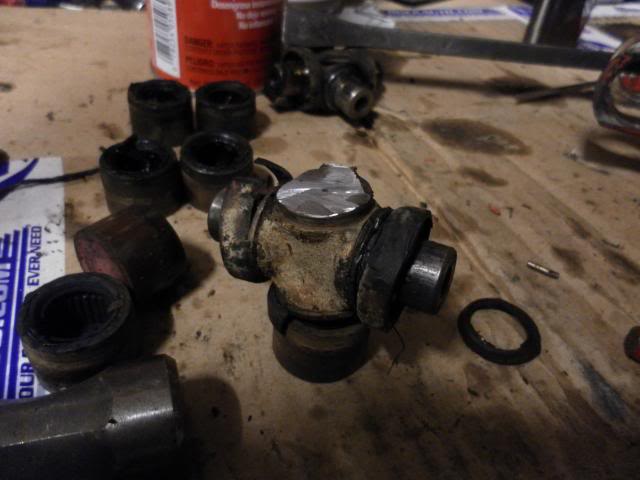 Then I went to work on disassembling the rear drive-shaft. I managed to get all but one of the old caps out with my new press, but one just would not give up. Well lets just say my grinder has saved the day a couple times now.