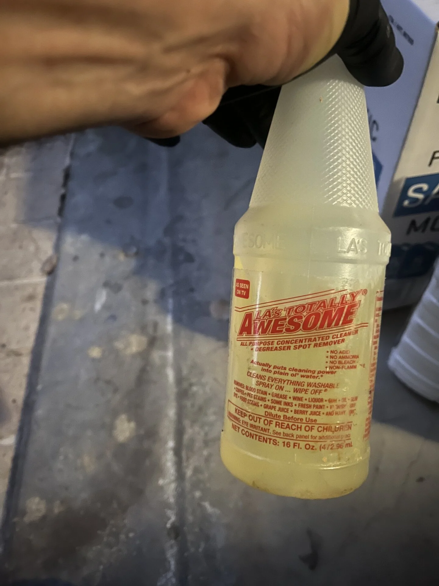 Update: reservoir cleaned really well using the Totally Awesome degreaser - took about 15 min. Simple green and charcoal fuel did not do that good.