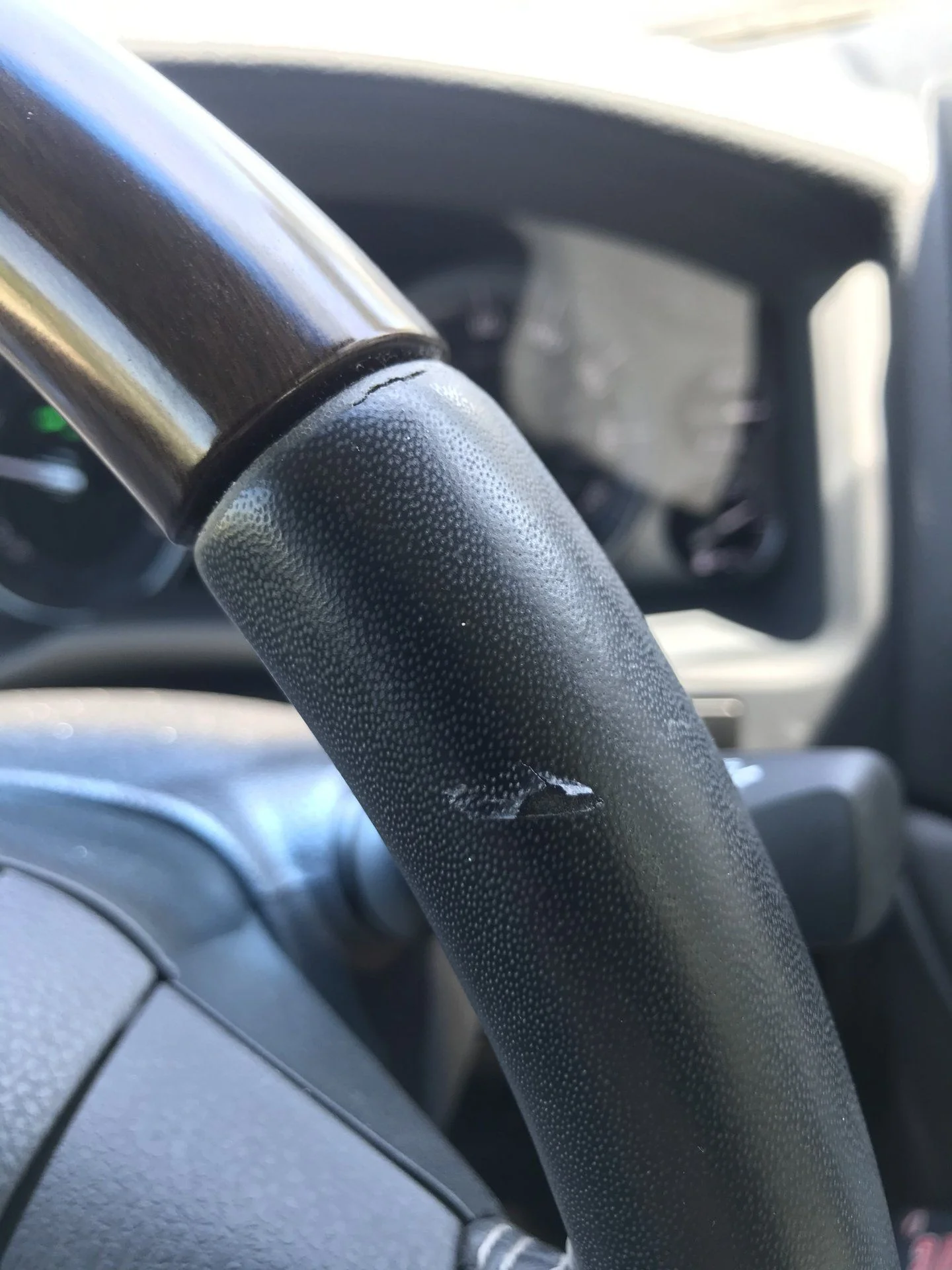 Anybody else have this issue on a 2016+ LC200? Saw what I thought was tape so I peeled it off and turns out it’s part of the steering wheel! Then noticed a crack right above it. I drive with my hand on the left portion or top of the steering wheel. Only touch the right part when turning hand over hand.