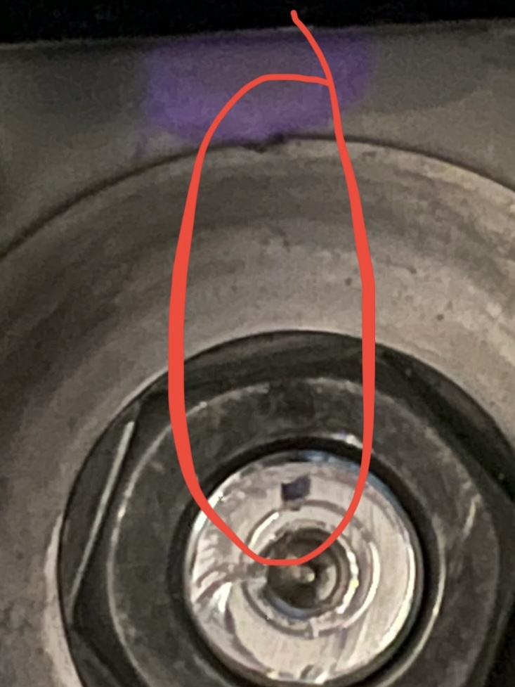 The black mark on the post lines up with the one on the nut and the small point on the purple spot. I think I just need to leave it be and get the alignment.