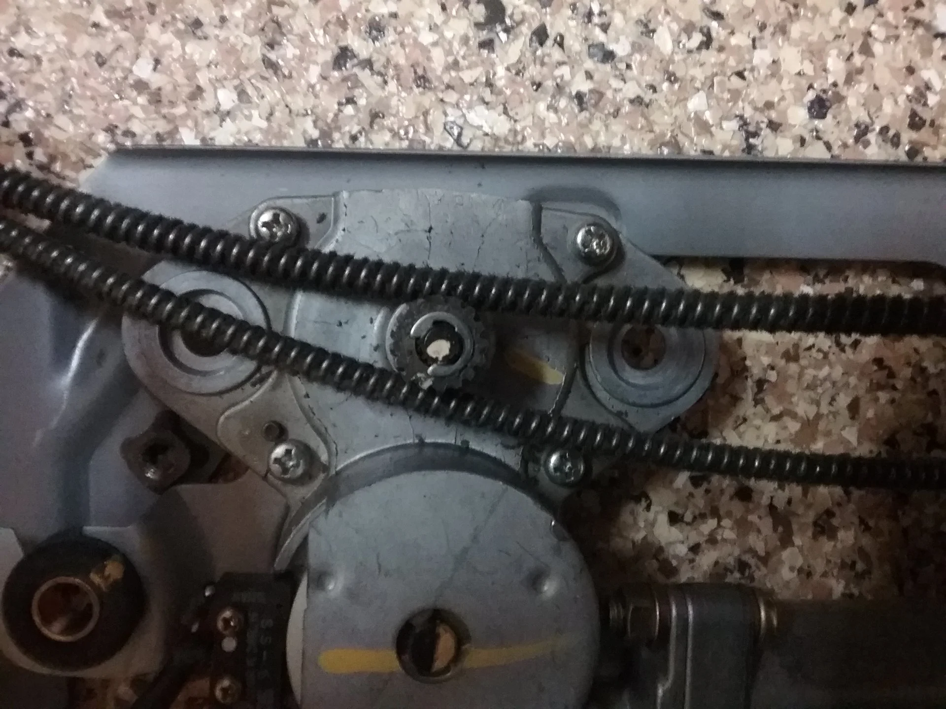 This is what translates rotary motion of a gear to linear motion of the ends of the coil spring pipe cleaners. Look for damage to the small metal pinion gear teeth where the coil spring pipe cleaners run, as if they get out of alignment or jump their track, this can cause the middle of the metal gear to get worn down and slip it's teeth. The symptom of this is a sunroof that grinds when the controls are operated, but the sunroof may or may not move. The motor and electrical is working fine, but mechanically, the pinion gear is toast (*or, you've worn out the section of coil spring that sits here). Another symptom is that the sunroof glass closes, mostly, but one side may not lift into place to seal completely with the roof opening. It has run out of teeth.