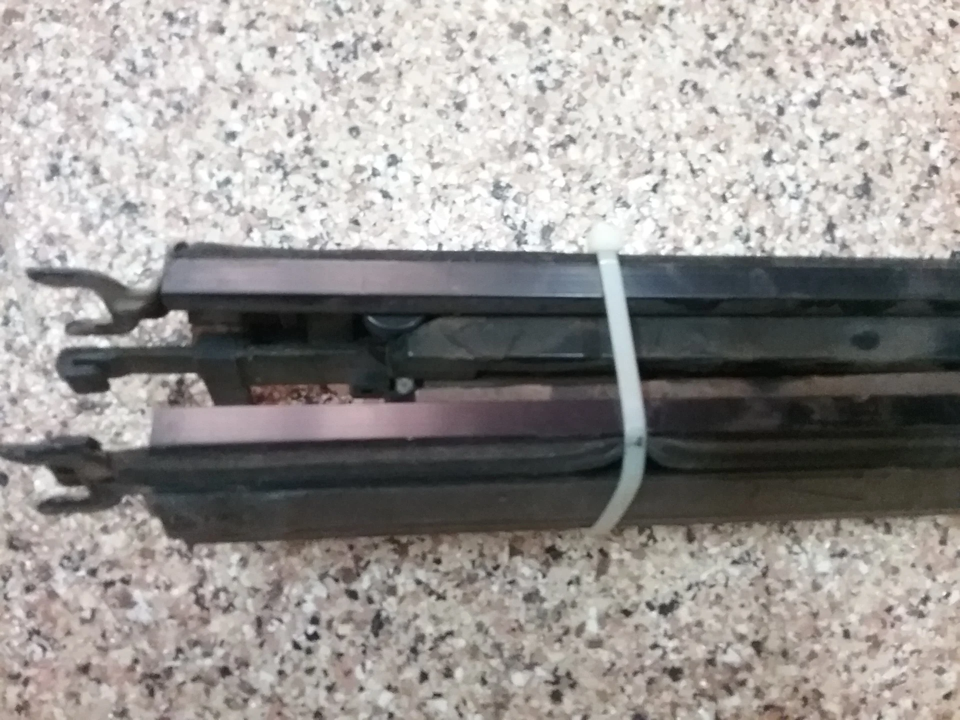 Here is the attachment (*back) end of the tracks showing the plastic clips and links. Note that these are both tracks zip tied together for,storage. No, you can't have them. One is broken, anyway...
