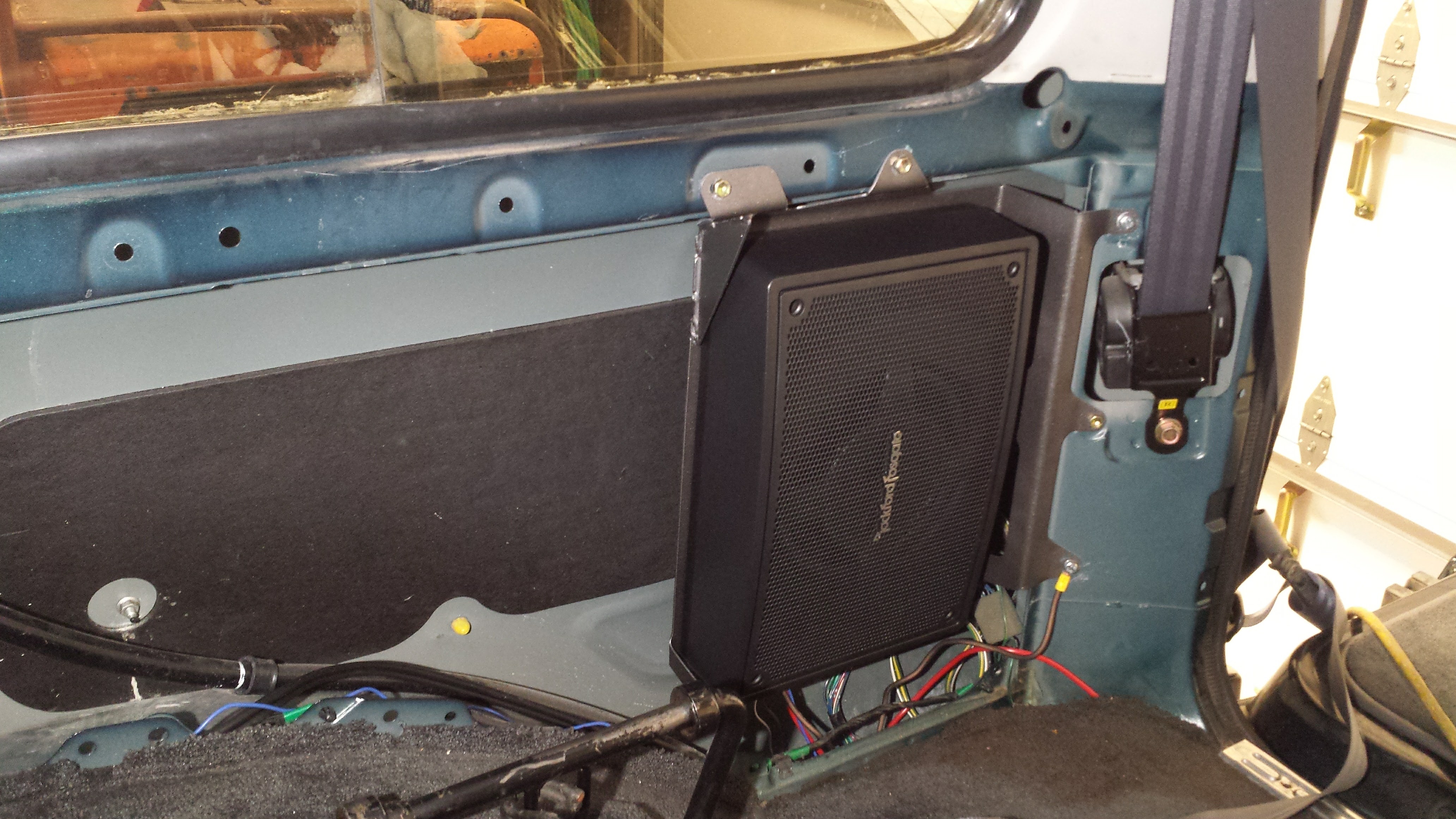 Here are a couple pics of the subwoofer install I just did...another option for filling that otherwise-wasted space.