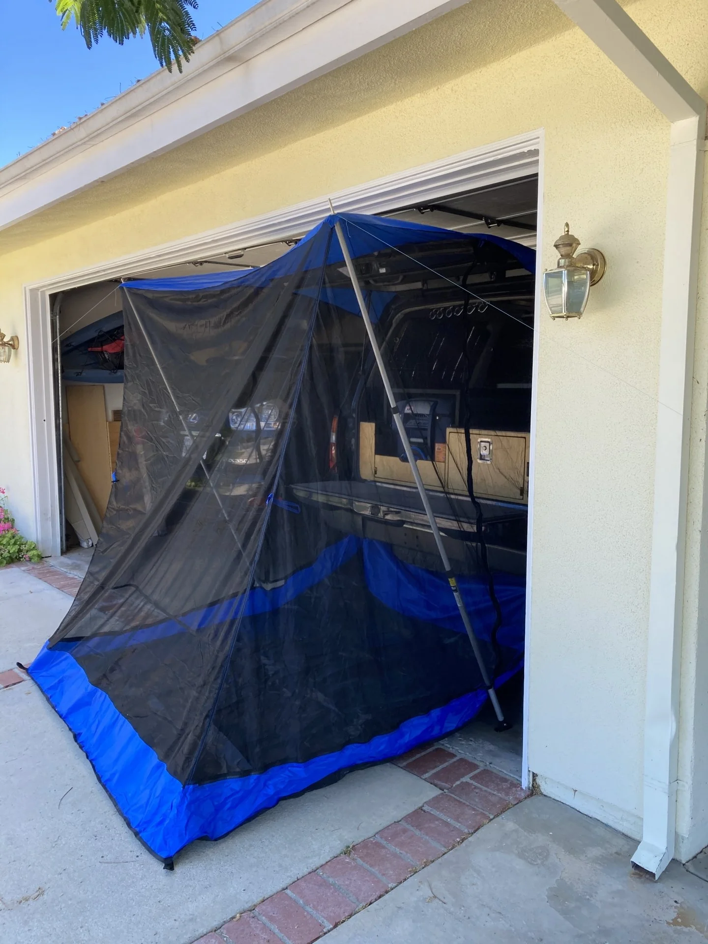 I did notice a small 1/4" puncture hole in the nylon wall down low near the floor. I started to create tent pole structures to help lift the ceiling and got some 3D printed custom pole connectors made by Outsane.