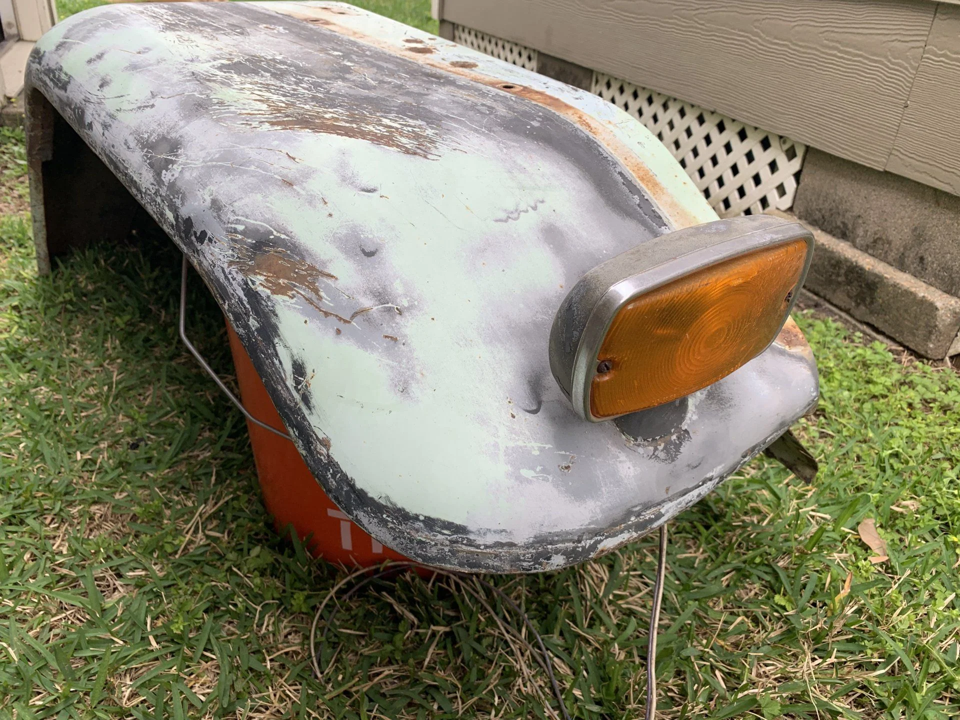 1971 FJ40 body parts for sale. Complete windshield/frame with wiper system, front fenders with lights, bib, bezel, and tire carrier with hinges and latch. Also have a pair of lights with rings, and license plate mount that I forgot to post.