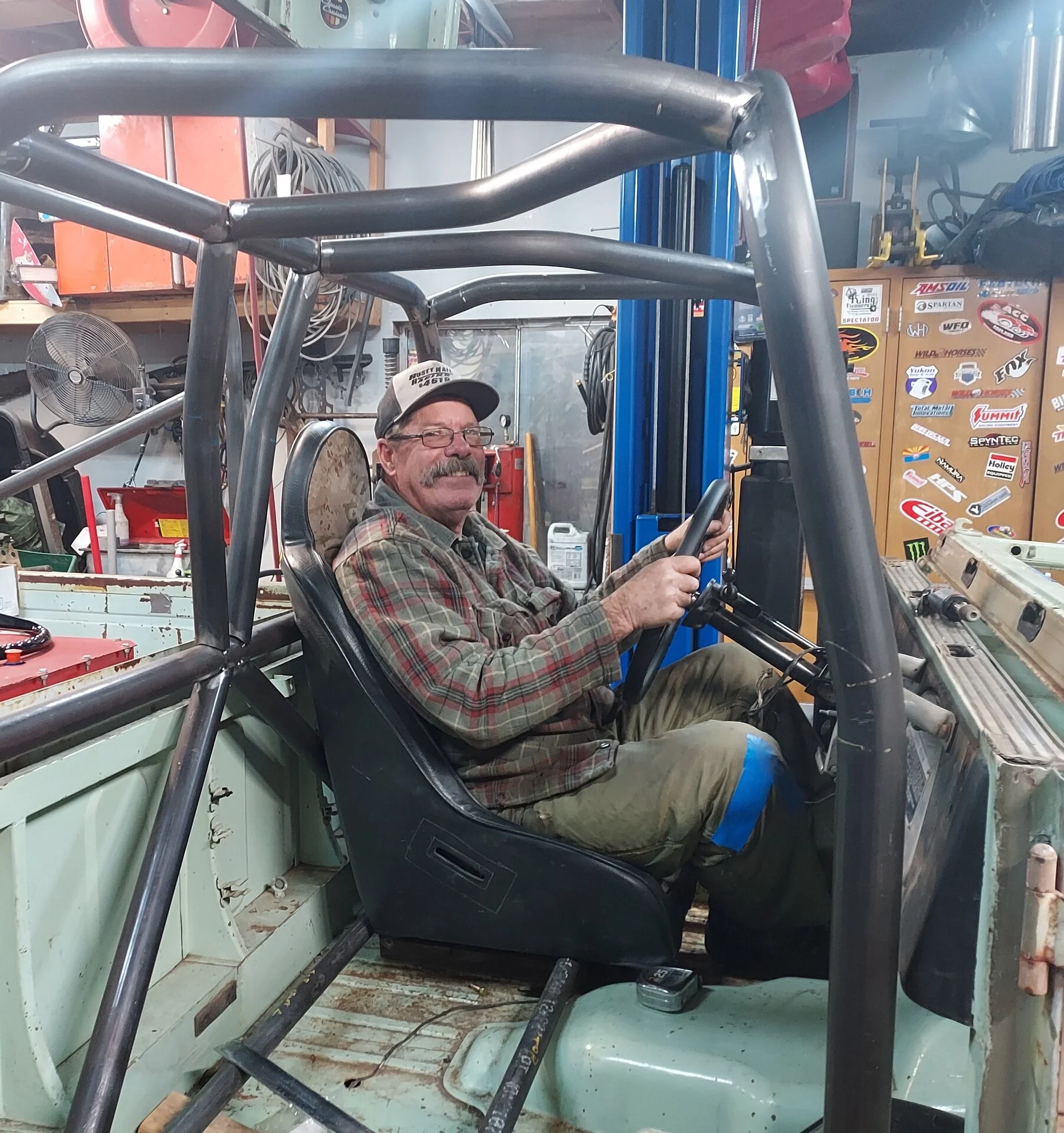 Looks like it got the Proffitt Cruiser treatment way back when. Bucket seats, power steering and a very well burned in shackle reversal.