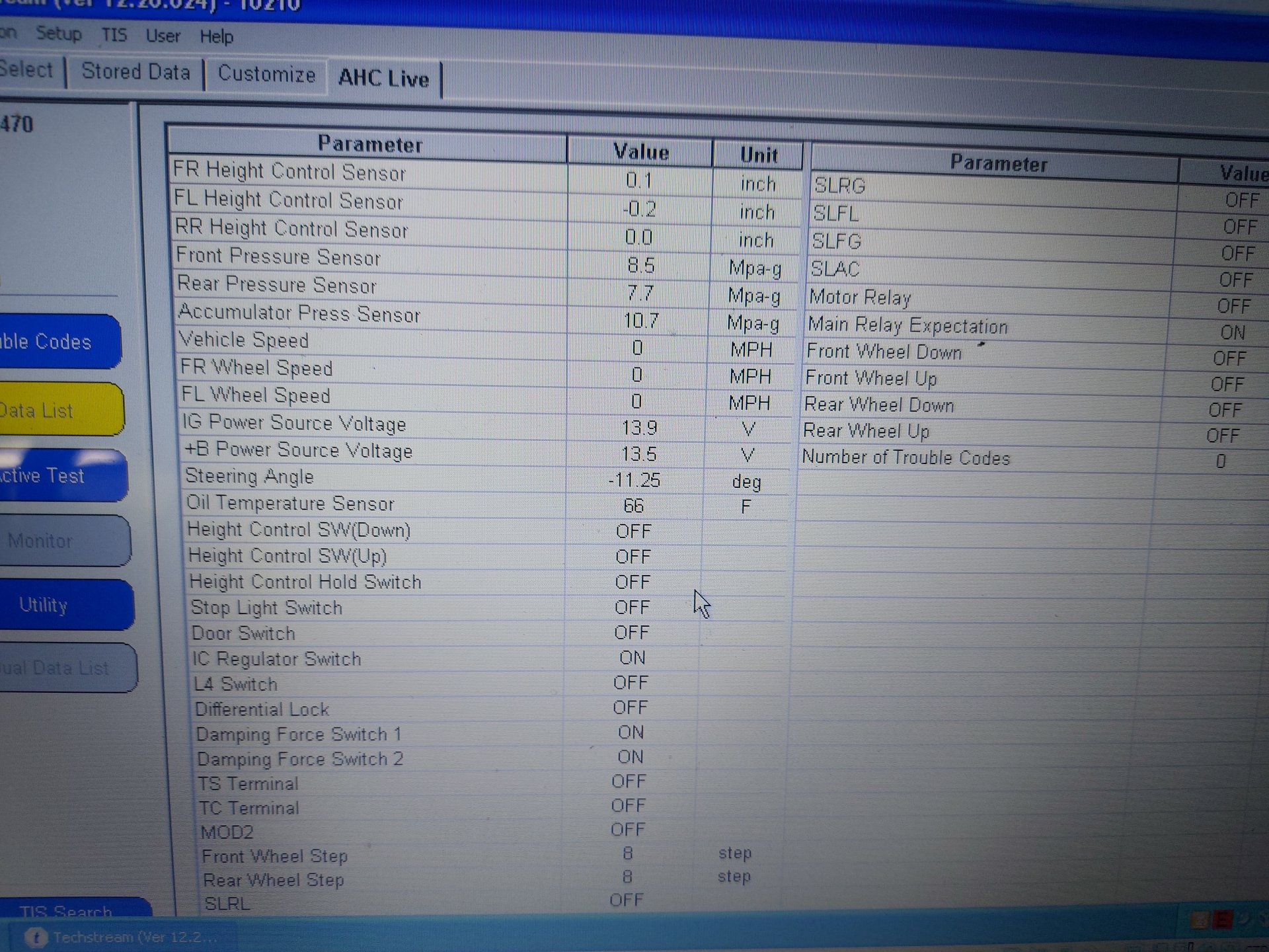 The so-called 16 step test can give an idea of what is happening at each corner. See Pages 5 and 6 of the second attachment -- section 4 Damping Force Controlling Condition Check.