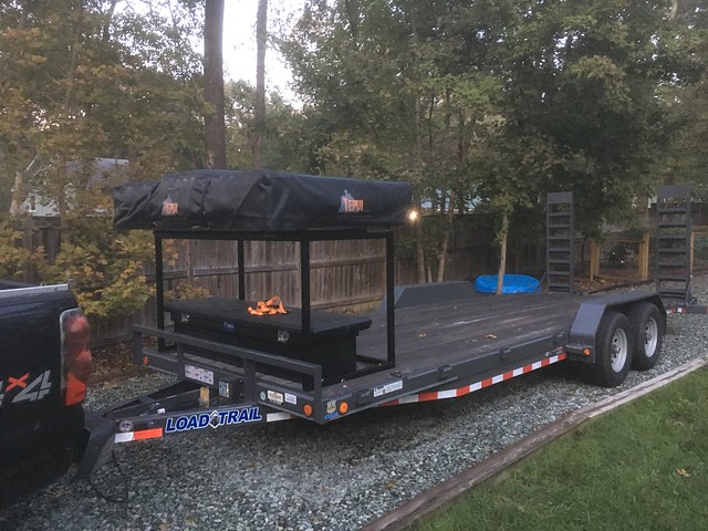 The second is a toy hauler as @SFROMAN states that is all enclosed - trailer. The 40 comes out, and the whole enclosed area is living room. The front part of that one is a kitchen and storage. The back is open for the 40, but cots etc go in there once the wheeling weekend begins.