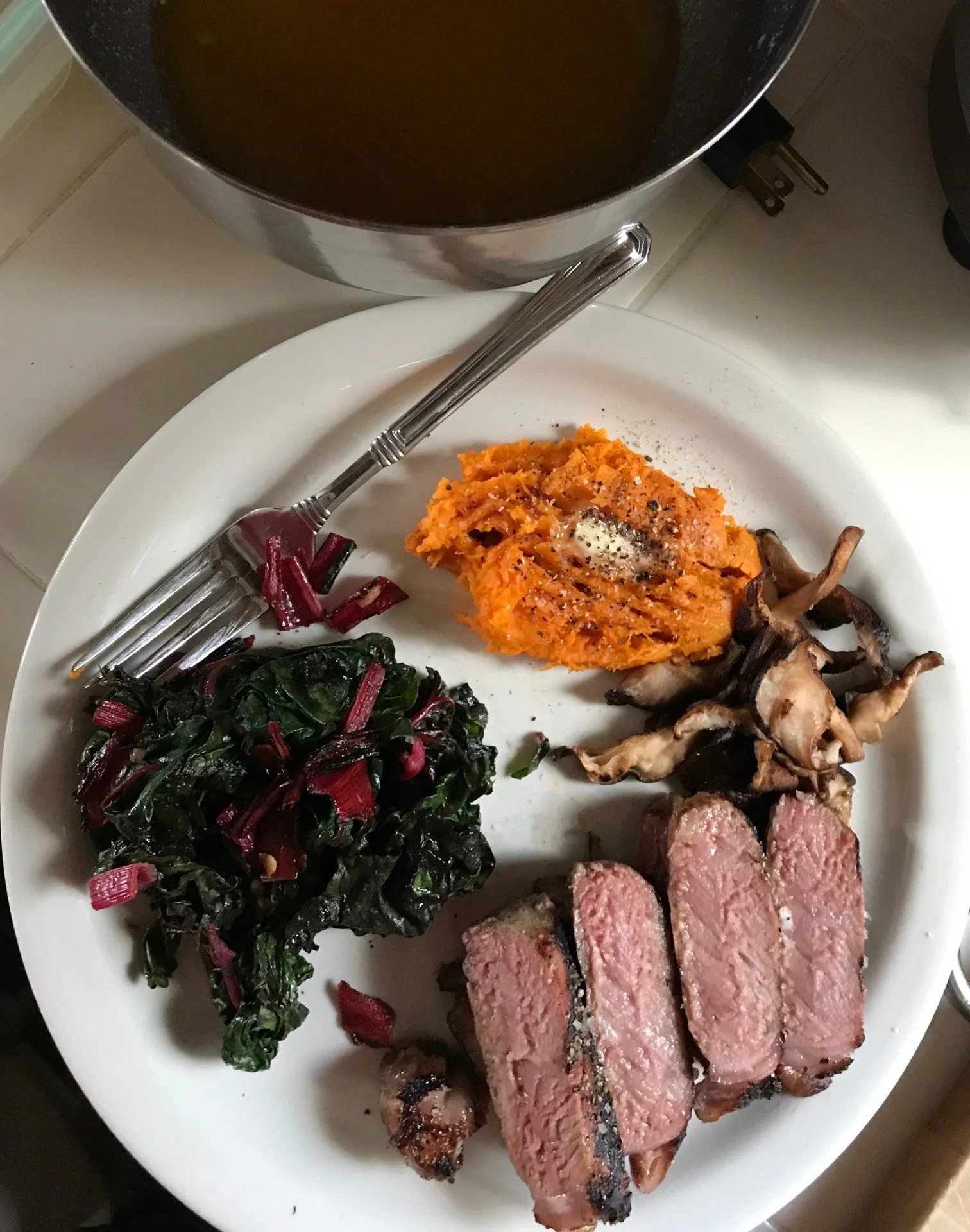 Anyway, to do this comparison properly I'd need at least a couple steaks cut from the same block: One butter sous vide, one plain sous vide and one just grilled. The steak was delicious BTW. No way of telling if it was better because of the ghee thing or not. But it was damn tasty.