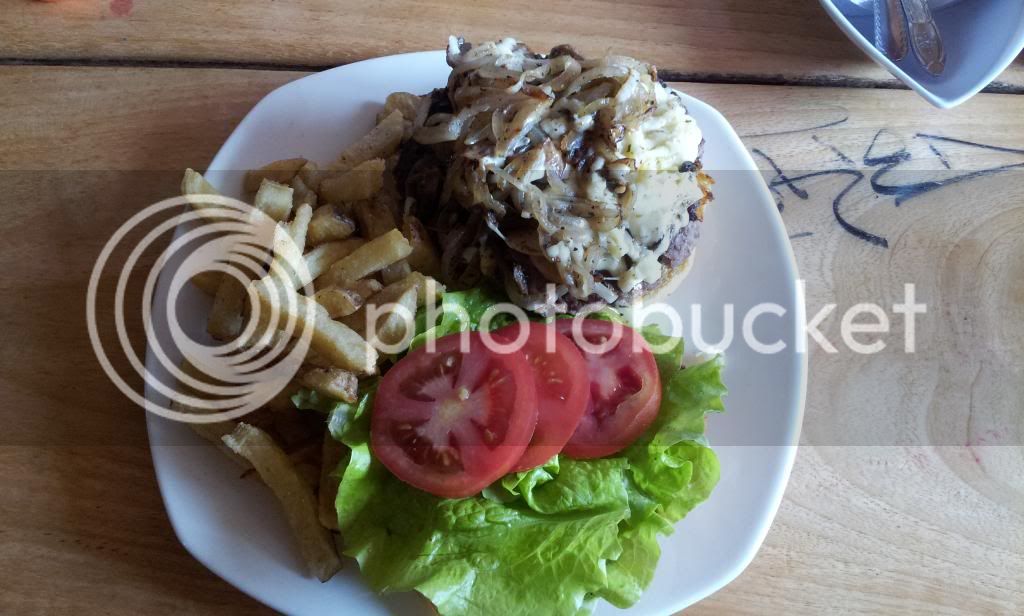 Lunch consists of some horrible quality ham sammies with some decent cheddar cheese, usually grilled or chicken breast sammies with feta. On occasion when we have some extra money we eat out at gringo places and usually have a cheeseburger.