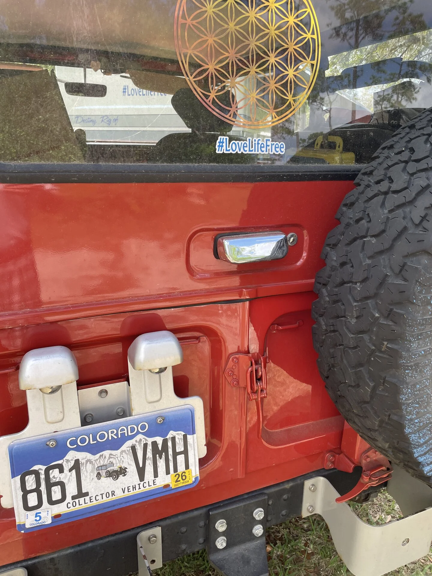 I had combed the mud forms for how to go about getting them back in place and deal with the lighted license plate holder and, since they still have the hinges as well as the "Bestop" rivets, it should be a relatively simple matter. However, I've seen an overwhelming amount of posts in here where people have engineered (either from scratch or by welding the doors together) a more traditional tail gate like on a pickup truck.