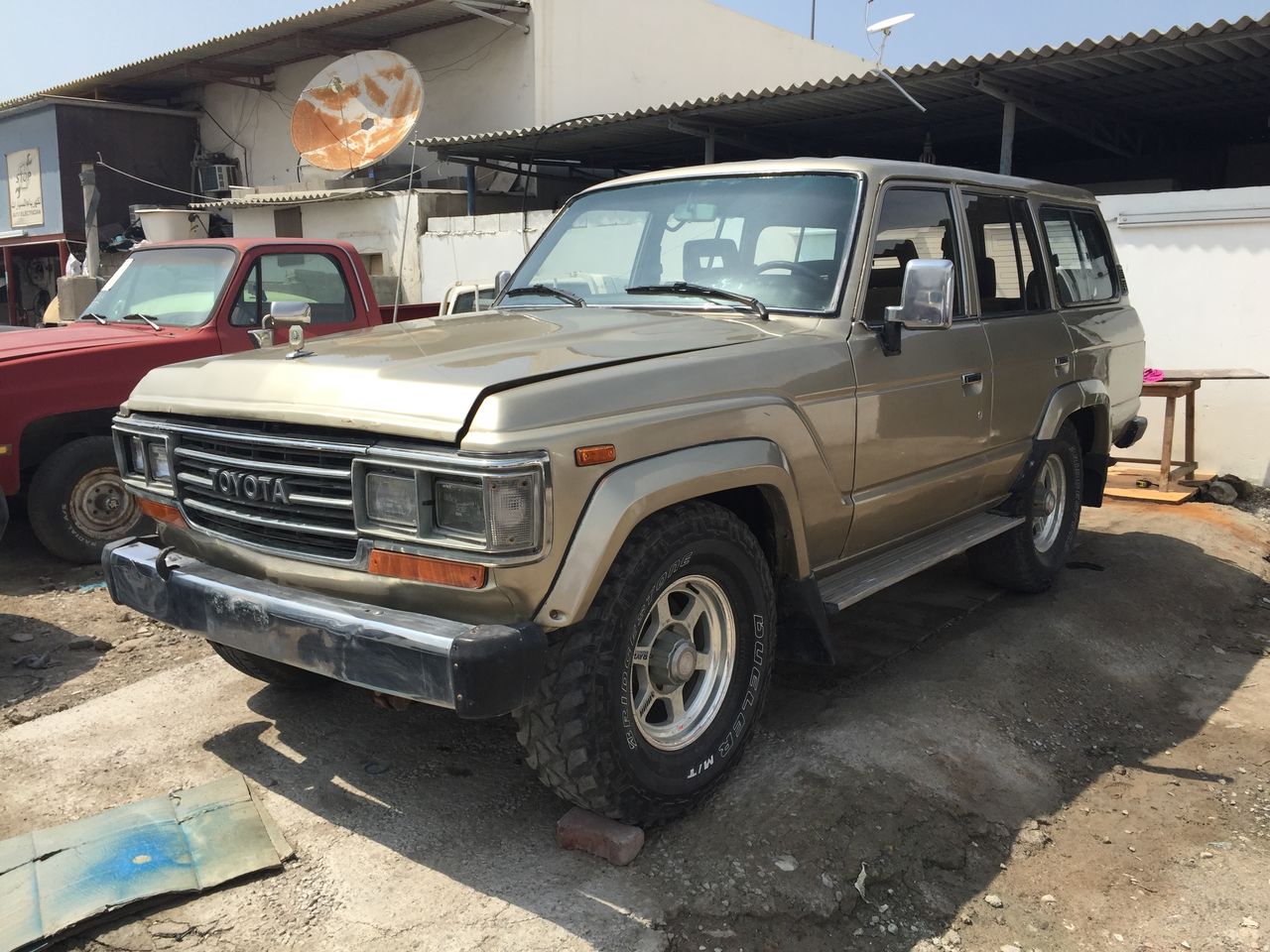 I'll get right to it. Previous owner of an '86 FJ60, i was cruising through an industrial area in the Northern Emirates when i saw a very distinct roofline out the corner of my eye. Needless to say i stopped to take a look. It was parked in a ditch outside some sort of workshop that wasn't marked with a pad-locked gate, the closer i got to the shop doors the more i found. This guy had three U.S. spec 60's that he was cannibalising for parts. The one i was looking at is a Gulf Spec G.C.C. market 62 which as a bunch more options. So i find a Bengali shop worker there and use all of my language skills to speak to him in his language and ask for his boss, he draws me a map to what looked like a dealer lot just a couple streets away. I meet the boss and get the deal done a couple days later....