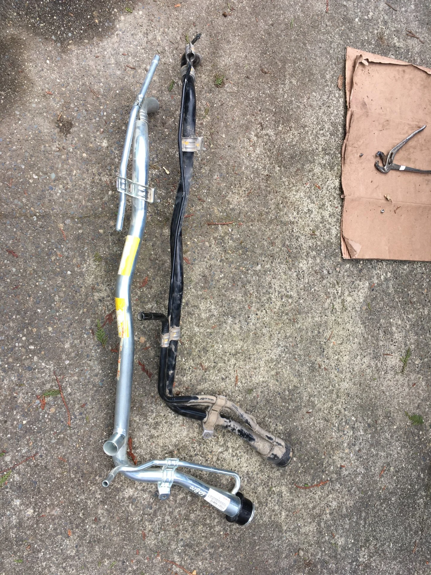 Cut off the upper vent line used previously by the charcoal canister (it vents to atmosphere, not behind the cap). I guess this is optional.