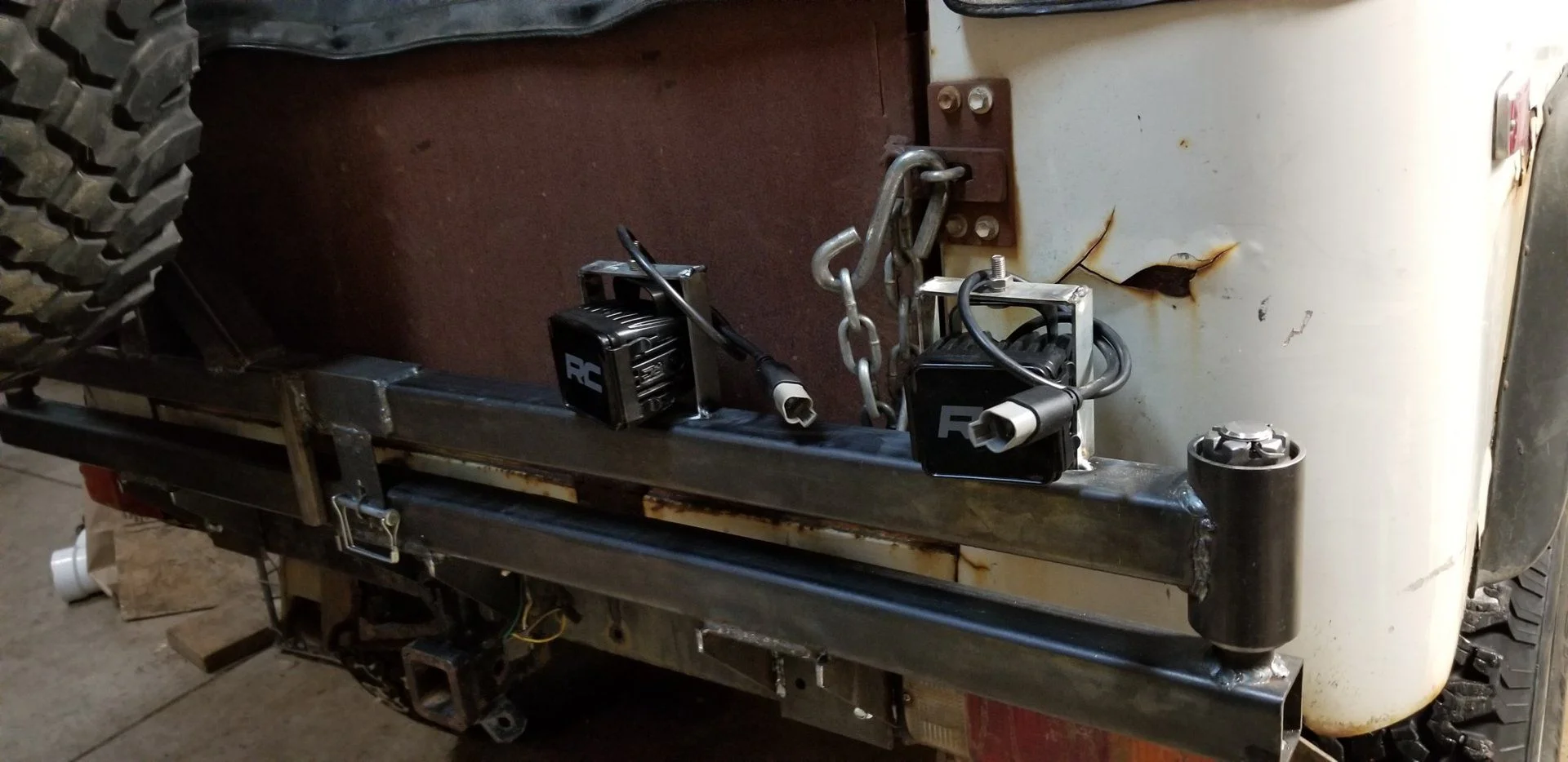 I also added on some 2" lights for reverse lights. I'm not sure how exactly to mount them. Any ideas? I need to be able to mount the basket in there eventually, so there needs to be space for that.