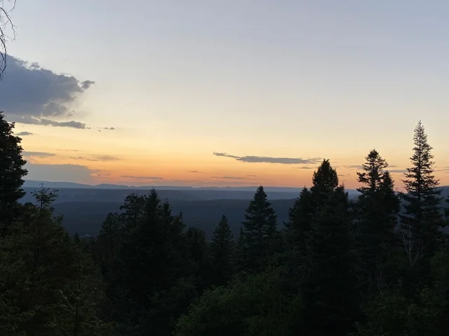 I couldn't quite see over Banco Bonito this evening to check your progress from a distance, but I did get a decent twilight photo looking in your direction from the north slope of Los Griegos: