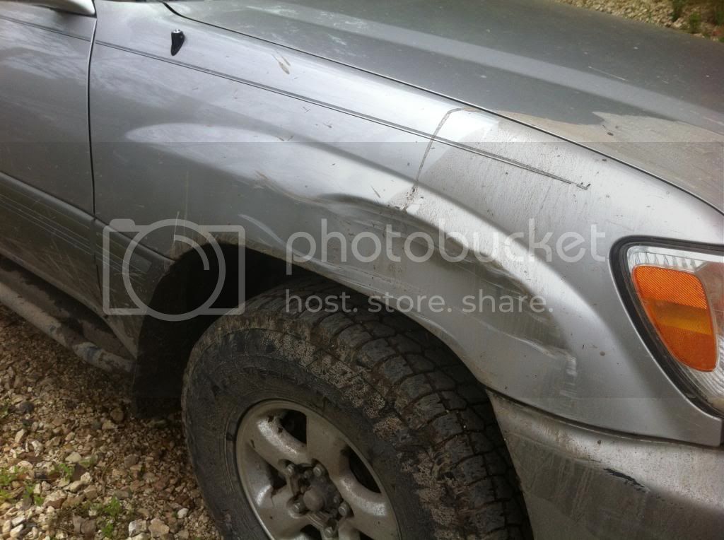 Any body damage on the driver's side? Did you reverse to get the wheel back down or did you keep moving forward?