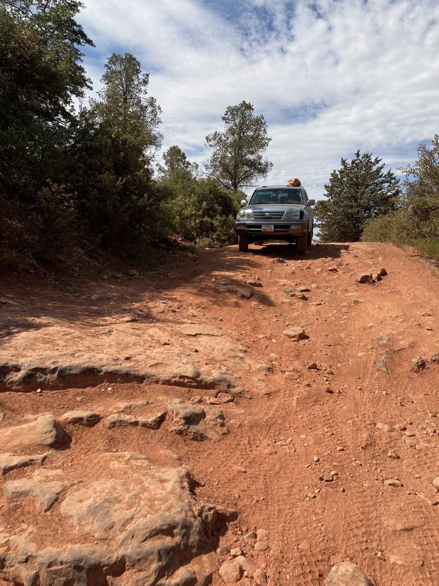 Vultee Arch Trail (4 mile long 4x4 road) to the actual Vultee Arch Trailhead, Near Sedona, AZ. Moderate trail, w/ some good places for articulation, rocks, sand, and beautiful views. Last picture shows where it took 6 tries to get over, needing low range, center and front locker.
