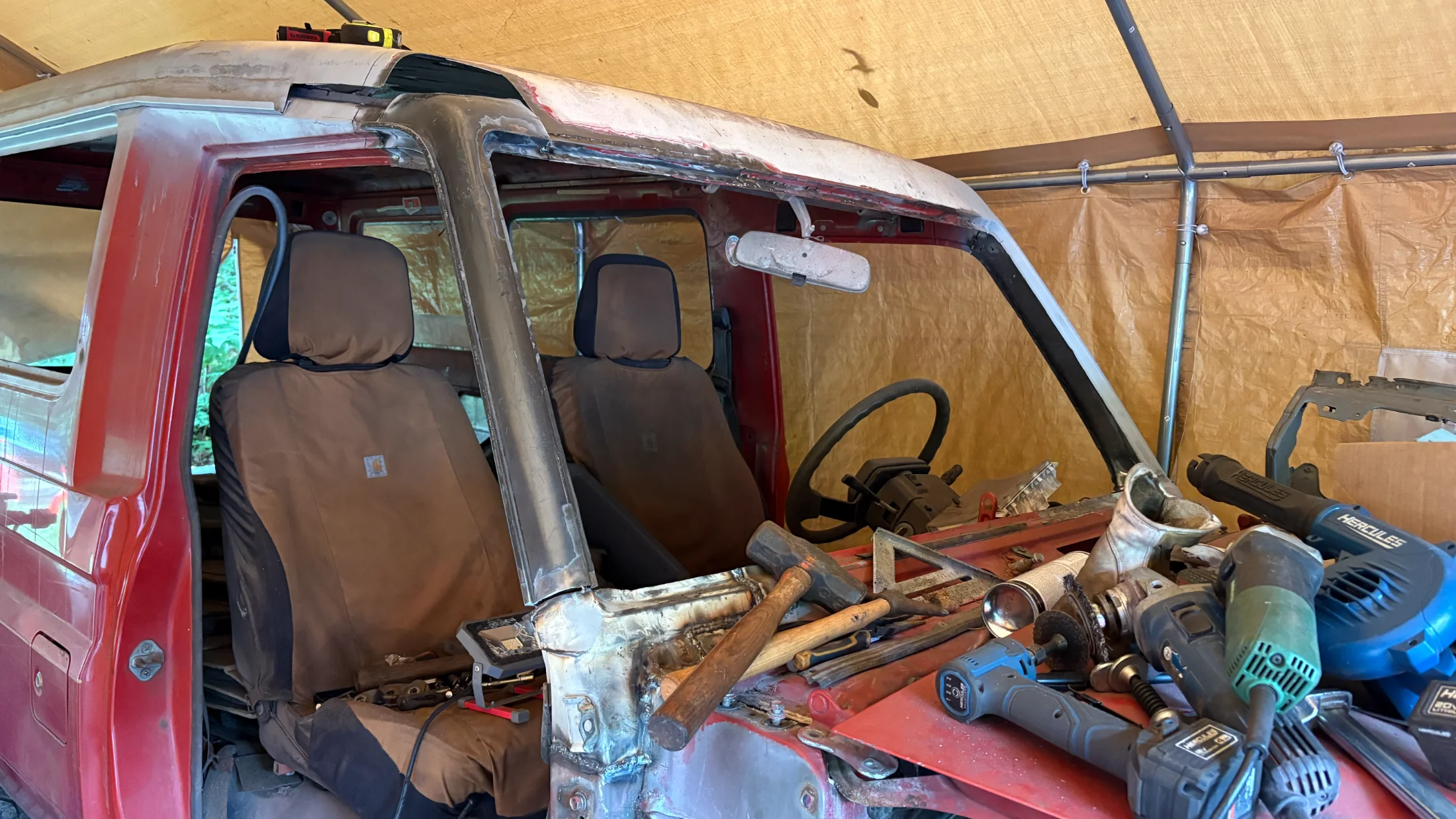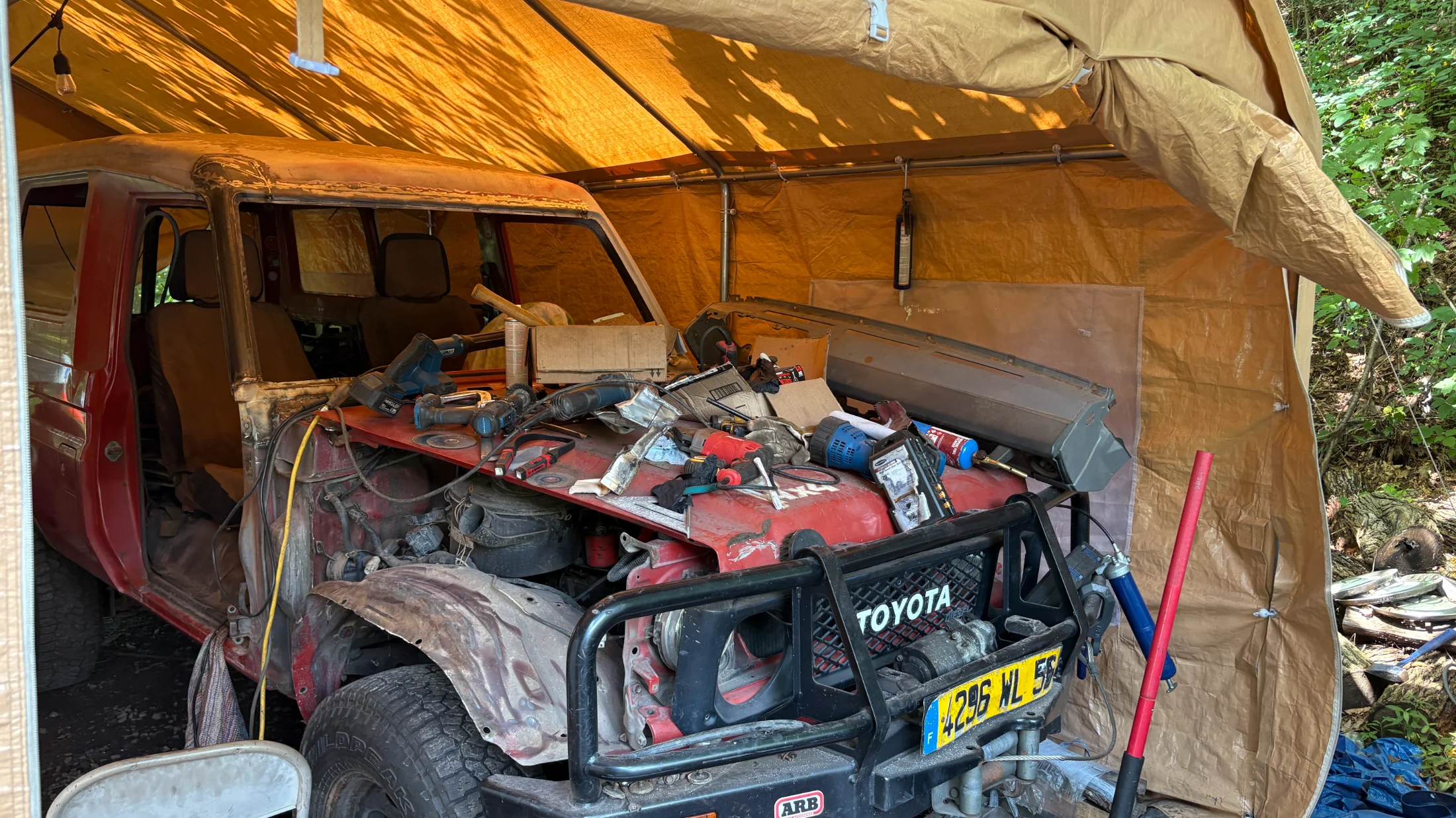 AND FINALLY, I got the troopy up and running again to turn it around underneath my temu carport to tackle the passenger side rot repair.