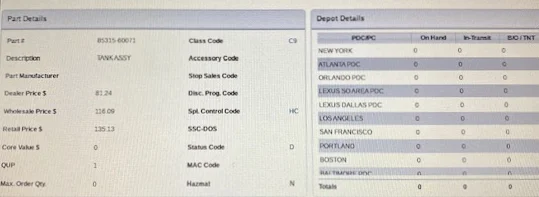 Class Code is a C9 which would generally mean that it’s fast moving enough for a number of depots to stock it in a given region (this case, North America in toto).
