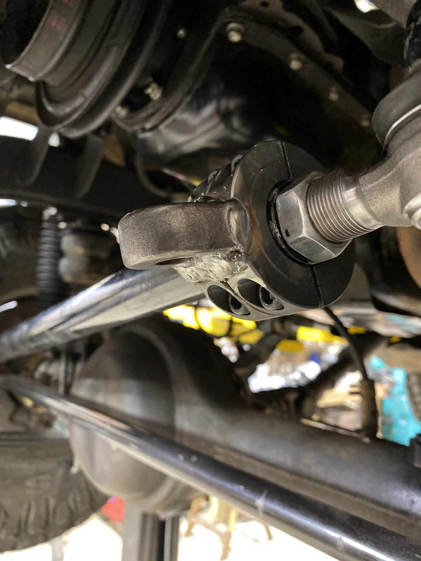 @FJ60Cam gave me this great idea for the steering stabilizer. Two McMaster Carr tube clamps with a bung welded to them.