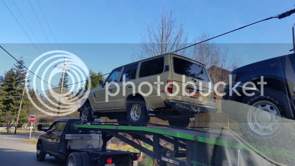 So, I go home for lunch(or whatever the plan was) and spot a car carrier sitting just 100ft from my house(which is not a highly traveled road).....and there is a darn nice tan fj60 loaded on it. I was a bit worried I may have been drunk bidding on Ebay and bought a tan 60. And as I don't have a tan one.....it wasn't being taken from my place. Always wanted a tan 60.......I offered him $5K if he would "loose it"