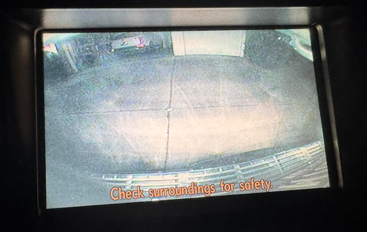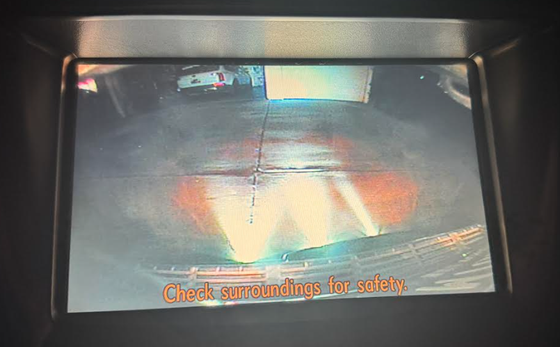 Here is the image when reversing at night currently. You can see curved streaks of light on the ground, which I suspect are from the ridges in the bulb housing itself. This definitely does not help with image clarity because it makes it appear as if the camera is dirty...but it's not.