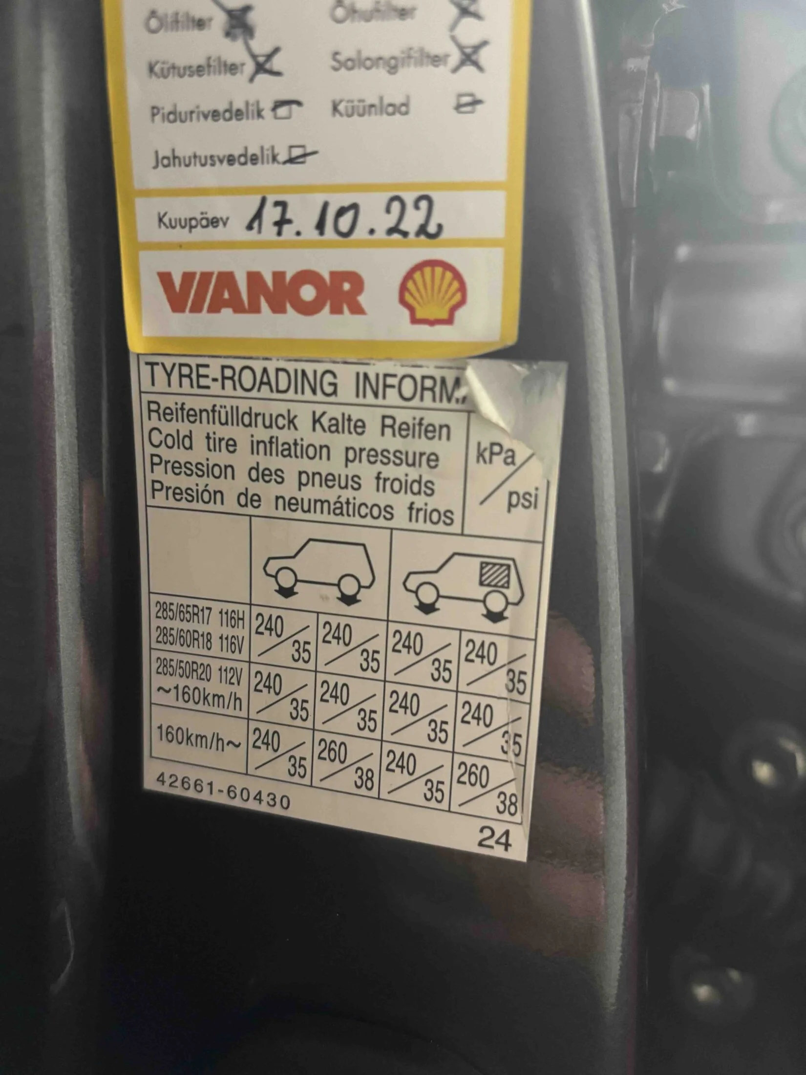 Then I can give you the RCTIP for those ISO-Metric 285/65R17 SL 116H tires on your LC200.