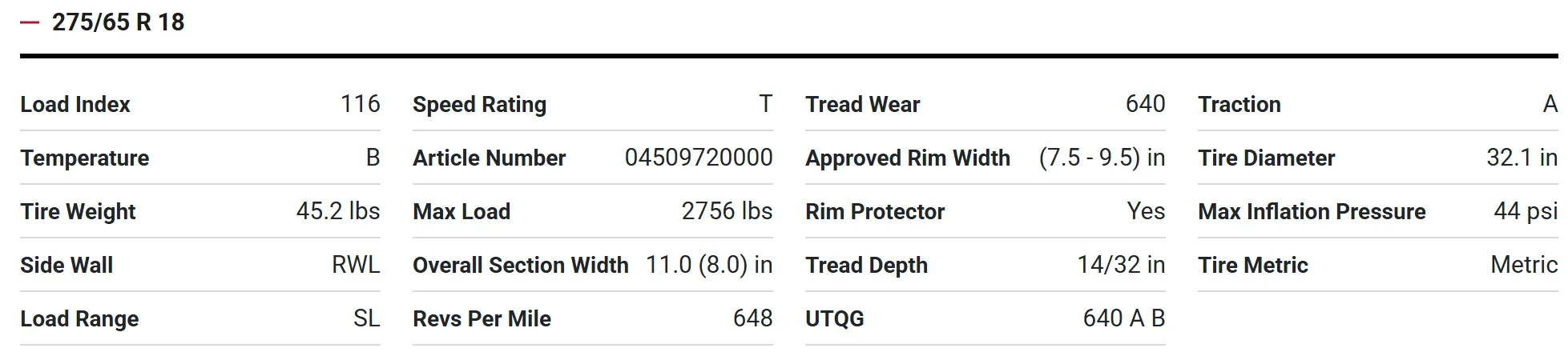 The RCTIP (Recommended Cold* Tire Inflation Pressure) for those ISO-Metric 275/65R18 116 SL tires on your LC200 is 33psi F/R.