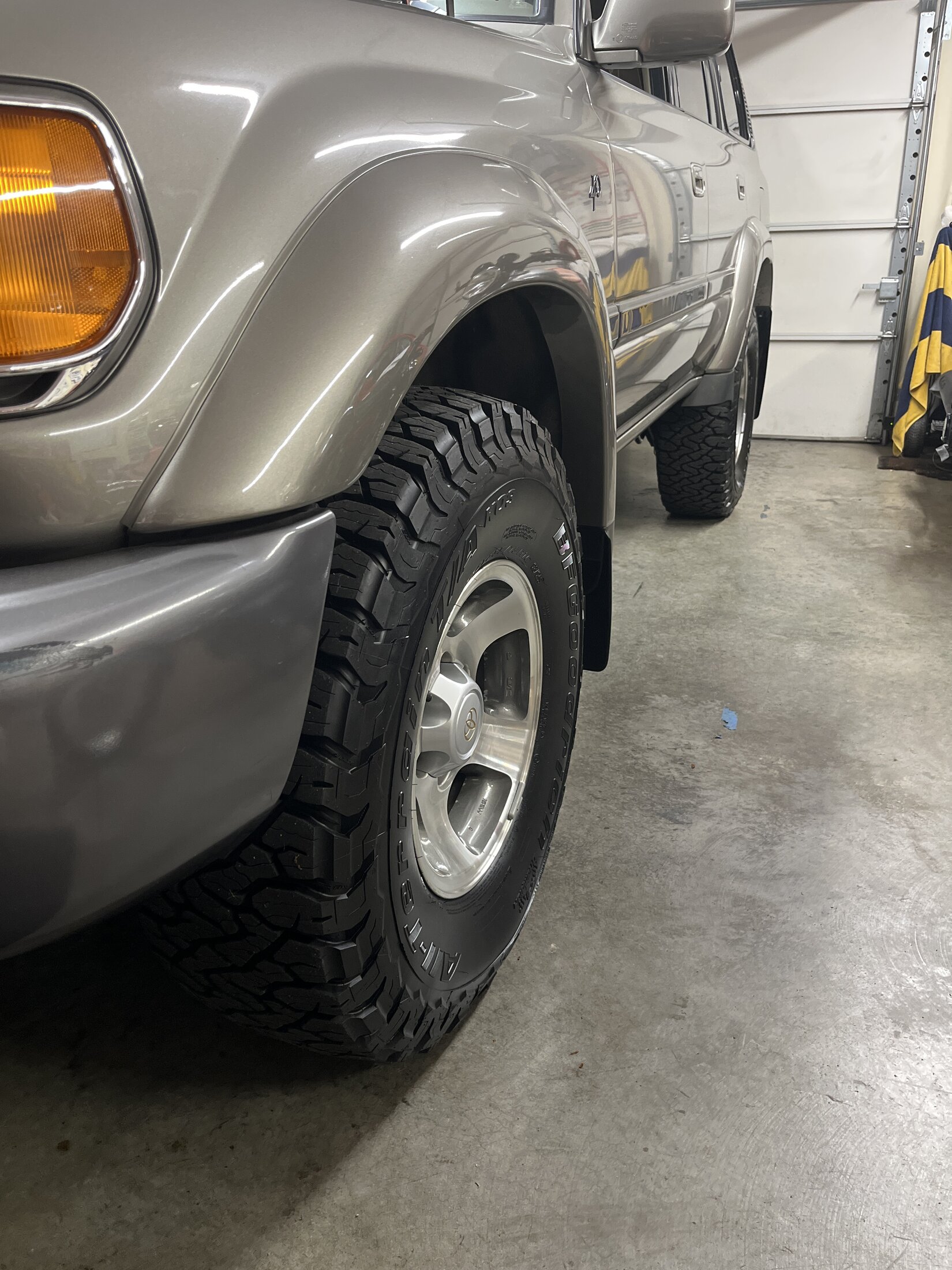 I ran 295 BFG KO2’s on a 3.5” lifted truck (until they were discontinued) and it performed great. I recently added a set of 295 KO3’s to a very low mileage 40th anniversary with new OEM stock springs and Slee spacers and it is great for a stockish 80 series. View attachment 3894631View attachment 3894632