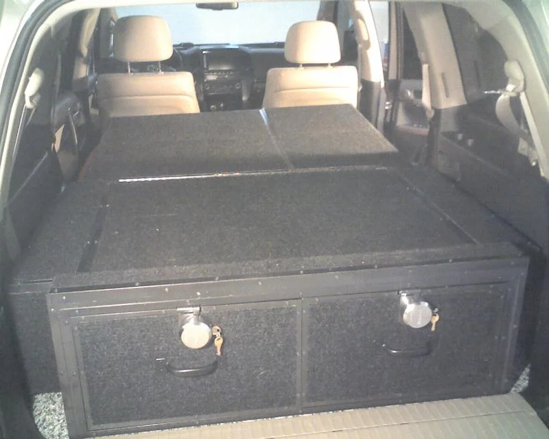 the side storage areas don't have locks (or even handles yet...i'm still looking for flush mounts that i like), but the drawers are very secure. i forgot to take pics before putting on the carpet, but the mounting for the clasps is thoroughly steel reinforced. and as you can see, you aren't going to cut those locks off with bolt cutters. the system isn't a complete vault, but you would need power tools and/or a lot of time to defeat it.
