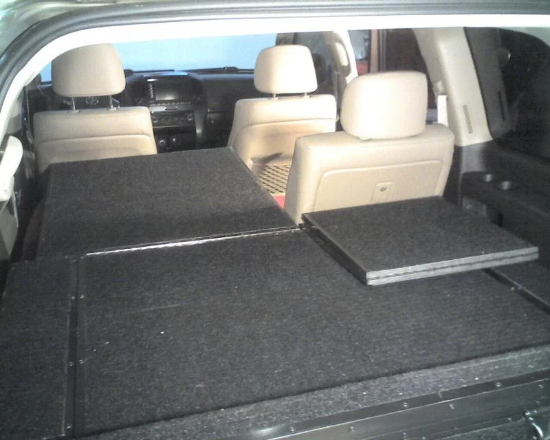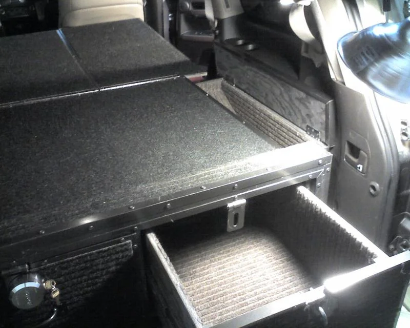 the fold down front sleeper area worked out nicely, but for now i'm using a simple brace for the front of both halves that goes down to the passenger floor area (not pictured). once the permanent swing down supports are installed, i will include pictures of those as well.