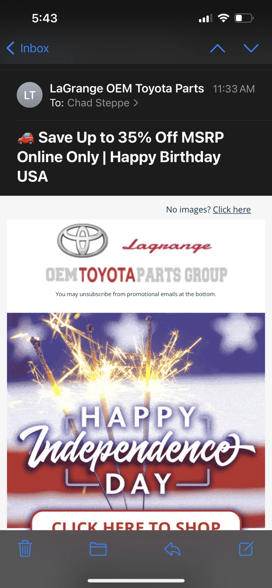 We'd need to do some digging to see how 35% off MSRP compares to the already discounted from MSRP pricing..I just received this advertising 35% off at Lagrange Toyota View attachment 3045433