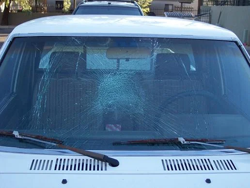 Here are a couple of pictures of the windshield of my 1985 Toyota after an encounter with an owl on HWY 80 somewhere between St. David and Tombstone.