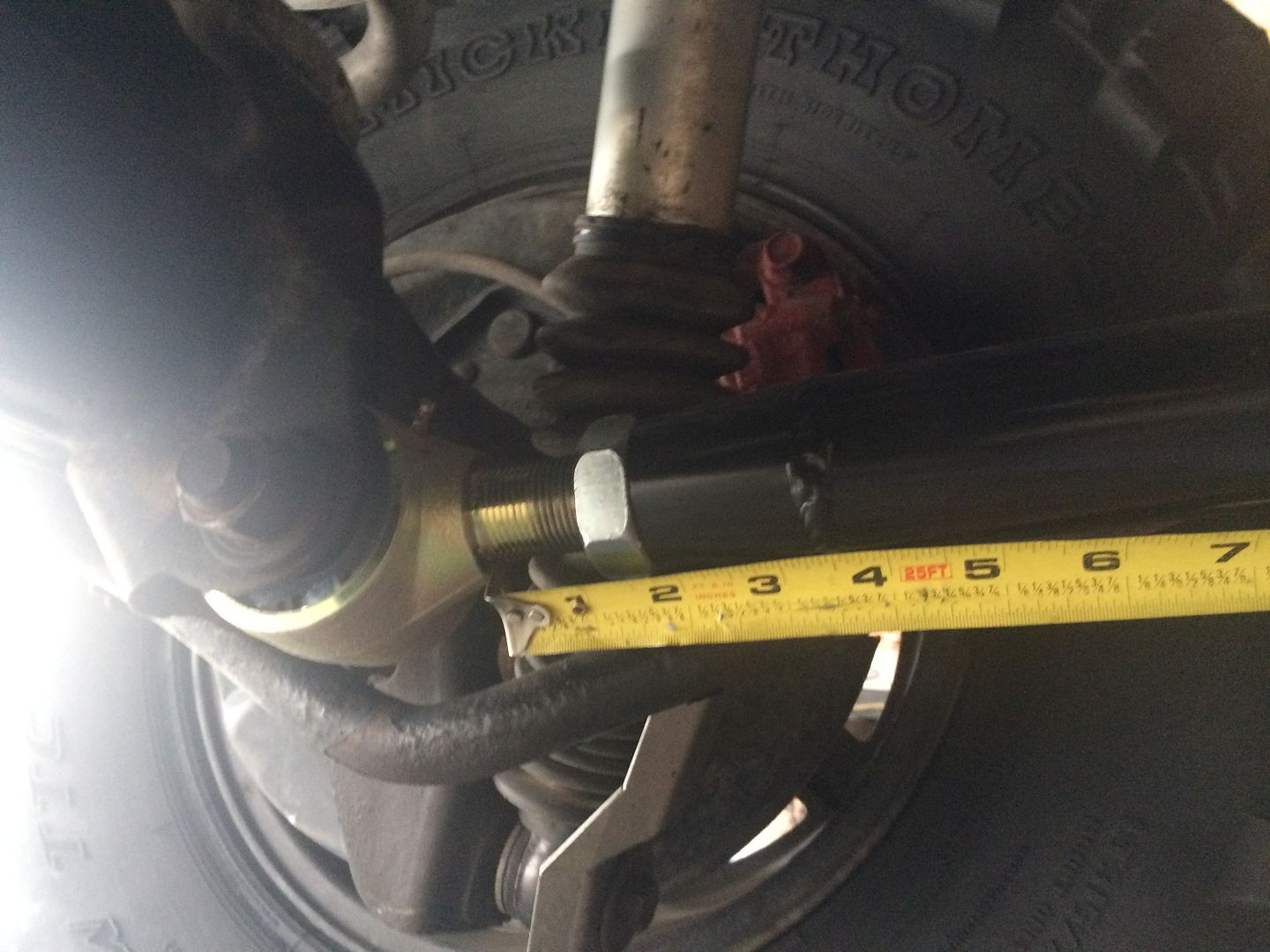 NOTE: in the above photo the JJ is at the axle end. Final installation has the JJ at the frame end (as Jason recommends). You can also see the difference in how much of the Joint threads are exposed between the above photo and the one below with the new longer arms.