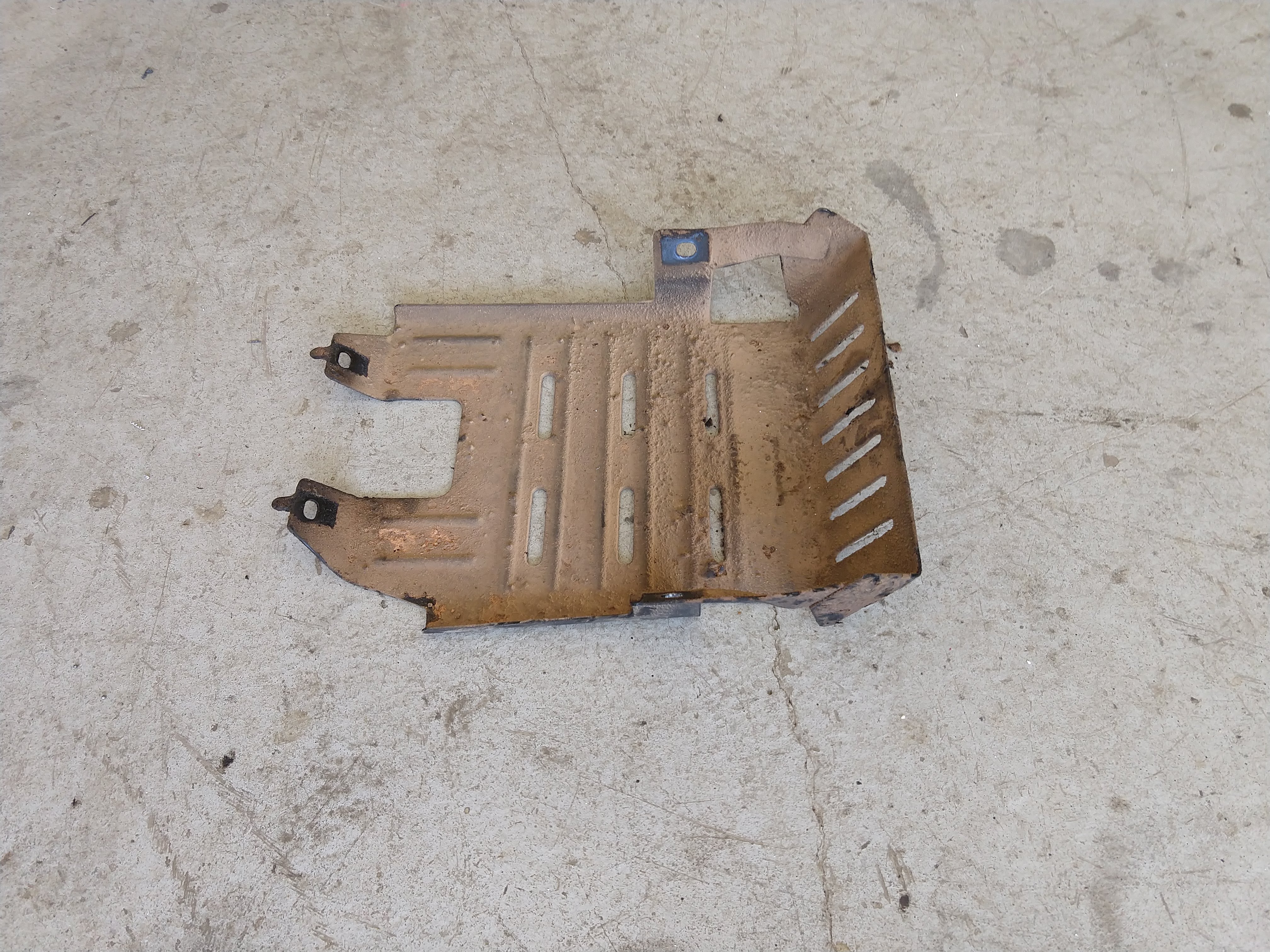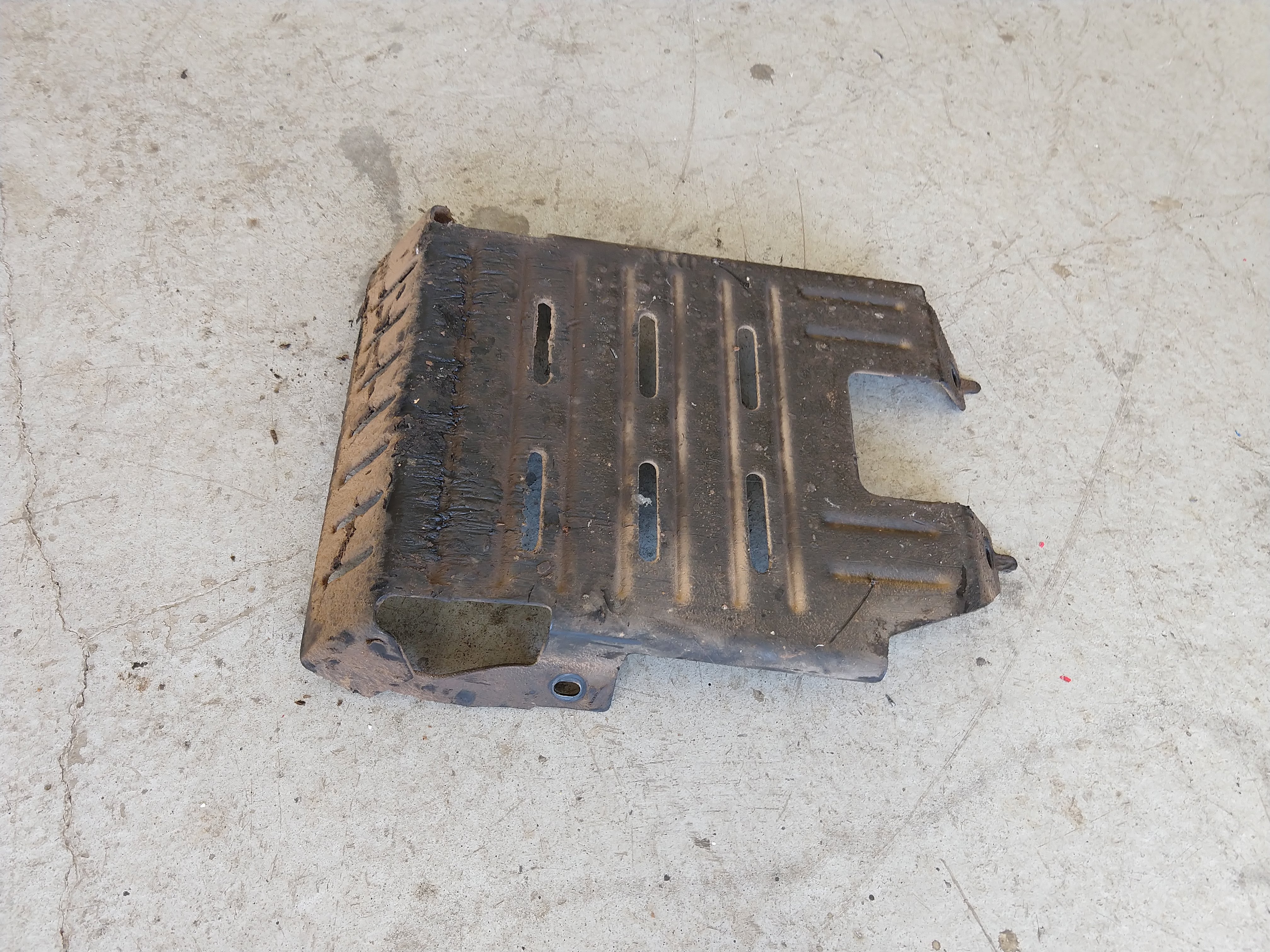 I removed this from my transmission pan when I built a new crossmember/skidplate. It looks nice and straight, and might even be in remarkably good shape since it's well-preserved under the layer of oily grime. I even know where the bolts are the go with it, if you need them.