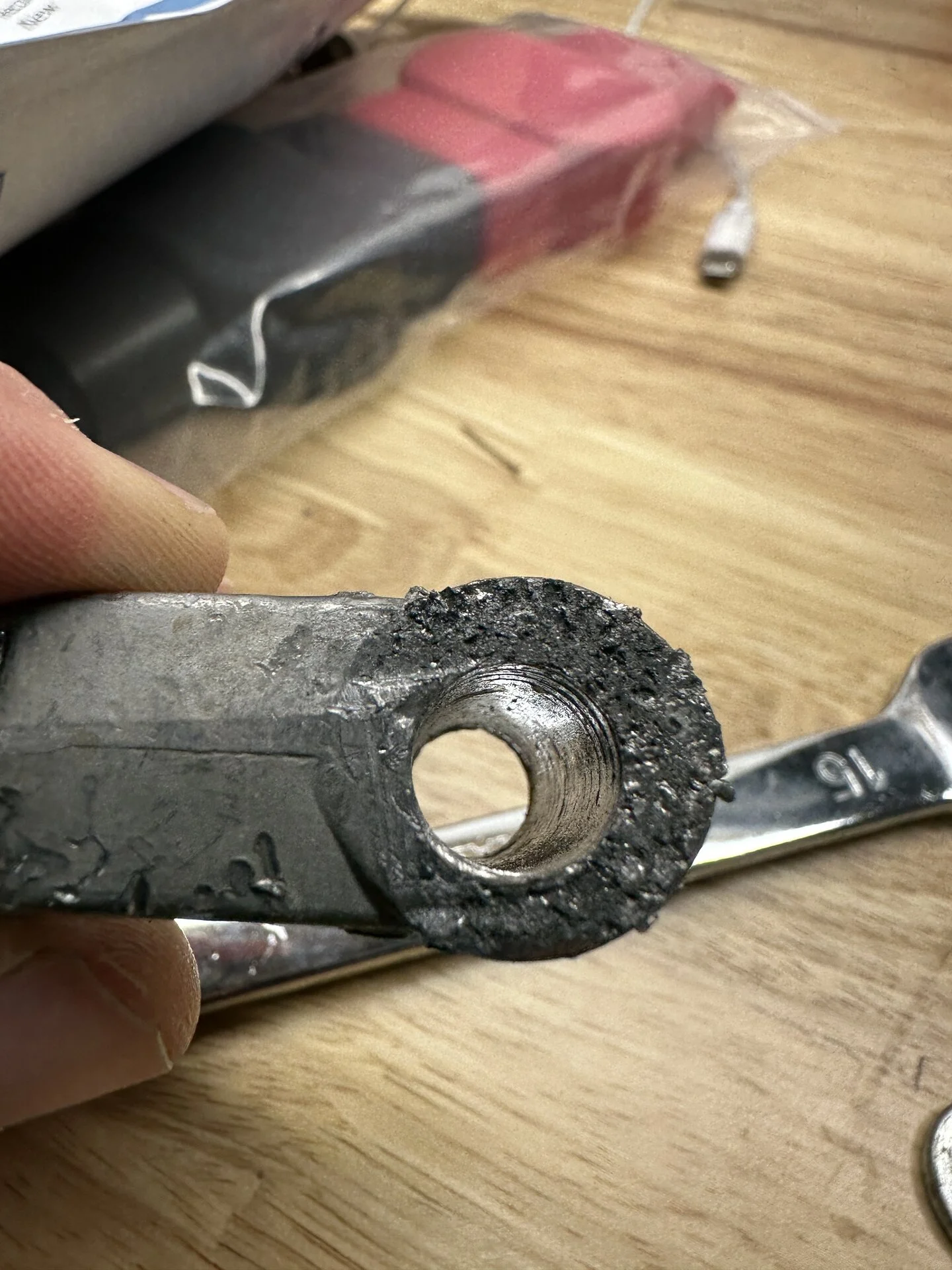 They said there was an issue with corrosion building up between the part that clamps to the battery terminal and the second part on top of that, clamping on each side. There wasn’t any corrosion visible on mine, but I removed it and sure enough, there was a little hidden corrosion. I filed it all really clean and put them back together. I ordered Slee’s newer billet ones and ran the old just fine until I got the new ones installed.