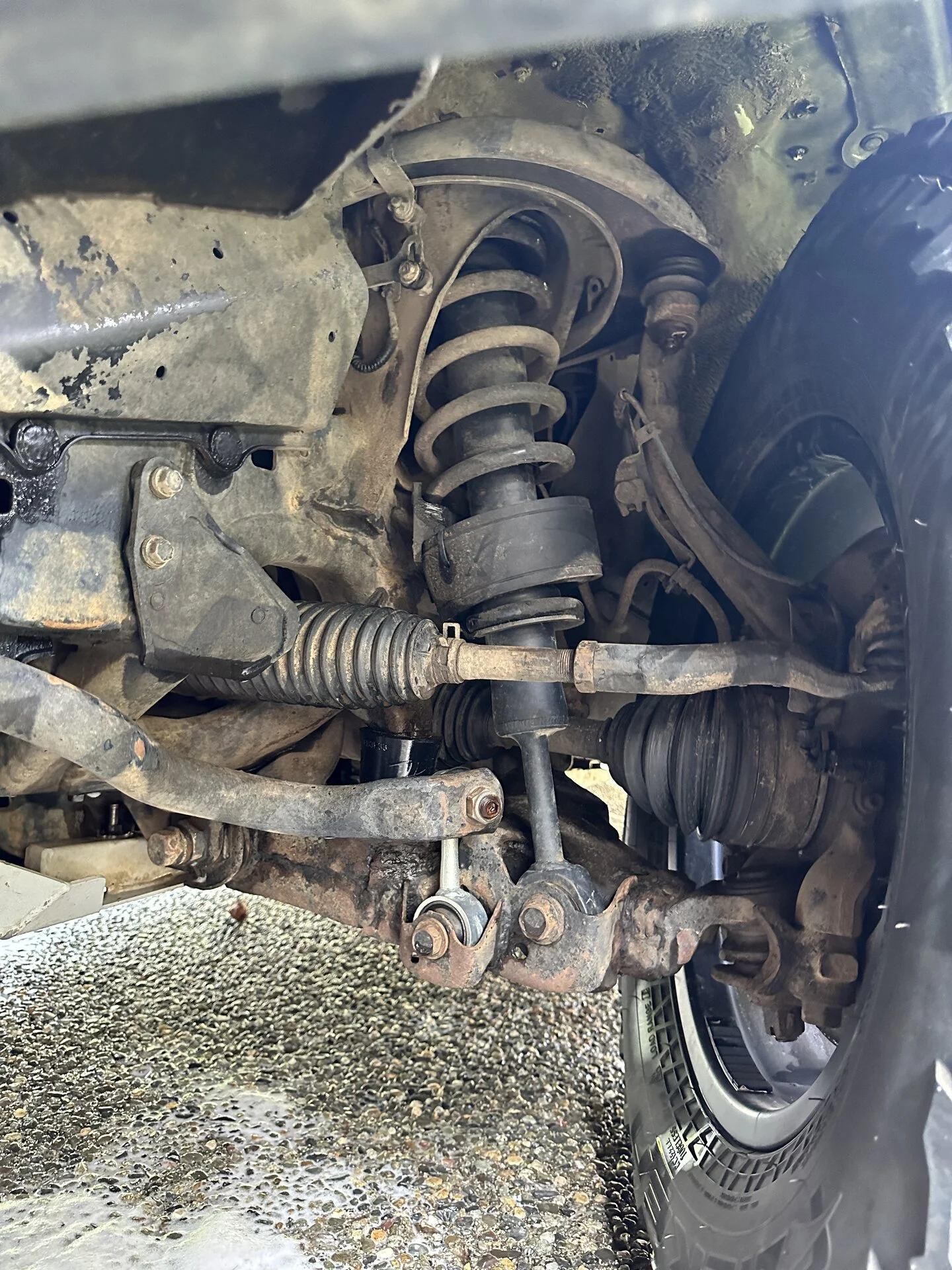 This is the last 1/3 of the trail before it become two way. If you know this trail, there is a climb, a hard left, and then a another slick rock climb. The second slick rock climb I heard a heart-stopping noise—a loud thunk, and then more scary noises at both droop and full lock. I thought for sure I broke a CV. I climbed under the car multiple times and didn't see anything out of place. I put the truck in neutral height and slid down the stair case and finished the trail.