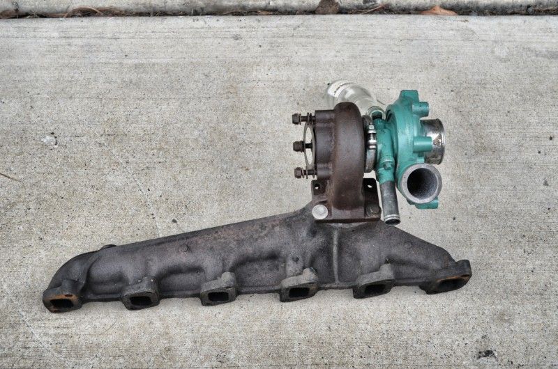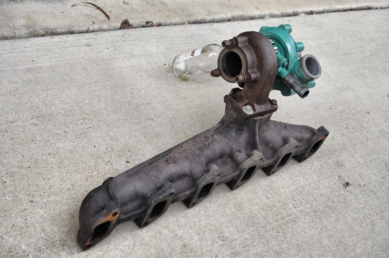 Then the turbo was mounted to the flipped stock 2h manifold.