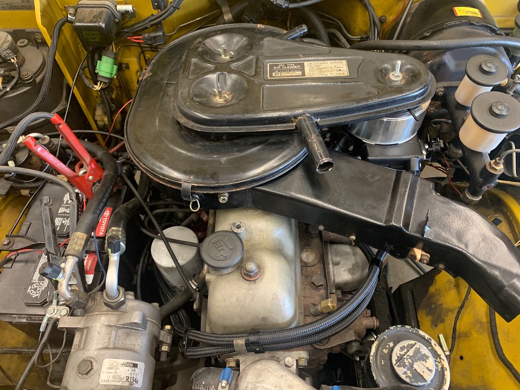 After driving her last spring I found drivability to be a real problem. The biggest issue was the carb. Whether it is the higher altitude of Salt Lake City vs. Seattle, or the additional miles and patina since I sold her in 2013, she just wasn't running well. It all came to a head when she simply died on I-80 outside of Park City and I had to get a tow truck. In addition the steering had gotten much sloppier over the years. The CCOT "mini truck" power-steering setup that was installed in the early 1990s was poorly fabricated from the get-go and just tired. Finally, smell of hydrocarbons (which is normally something I love) had either increased or I have just grown up. Either way, I felt I needed to clean this up if I was going to be driving it a lot. It was important that my wife would not be disgusted riding in or driving the rig
