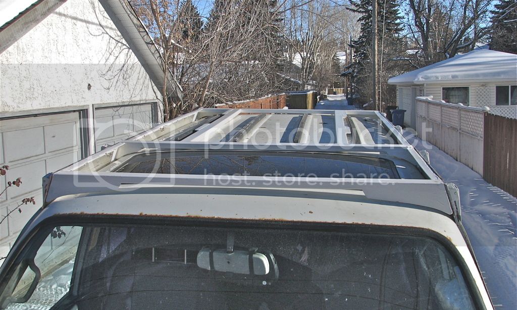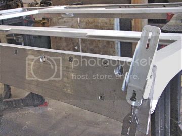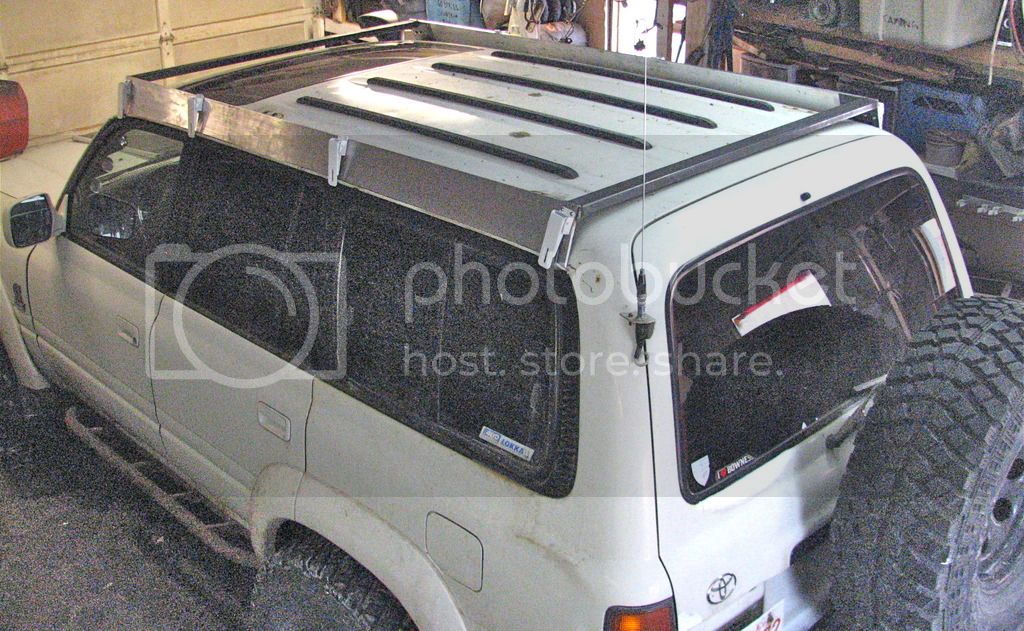 I havent been on mud much for the last few years, was laid off work a month or so ago and have had time to fix and work on the 80, started building a roof rack. aluminum side rails that sit in the gutters, steel across bolted to the aluminum, some sort of gate or door latch with stainless clasps bought off ebat to hold it down, the first couple pics are early construction, I've more steel welded to it now and will probably have it finished and painted by the weekend.