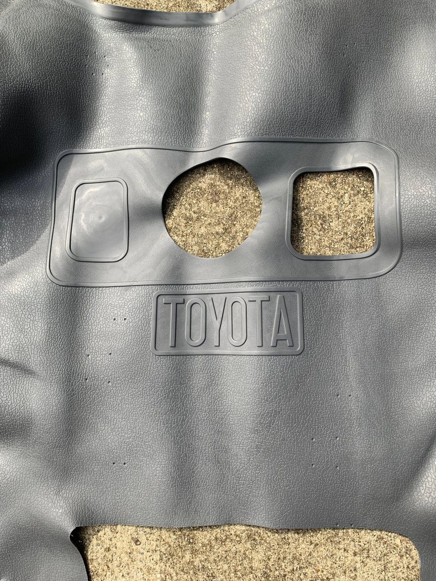 As for the PTO since was never offered as a option 79+ no outline might have been a better plan. The 1/79-9/82 outline are quite a bit different than 10/82+. While could cut it wouldn't look right with hole cut different than the outline. Only brought it up because someone mention these were 79-84. For the 79-82 these are a perfect match. For the 83 model Toyota made a number of changes that effected the mat. Besides different colors the four and five speed were different because of the location of the transfer shift lever. The 83+ market is small and wouldn't make sense to do a separate mat. Making a mat without any shift boot outlines so could cut for different setups would not be the way the largest market would want it.