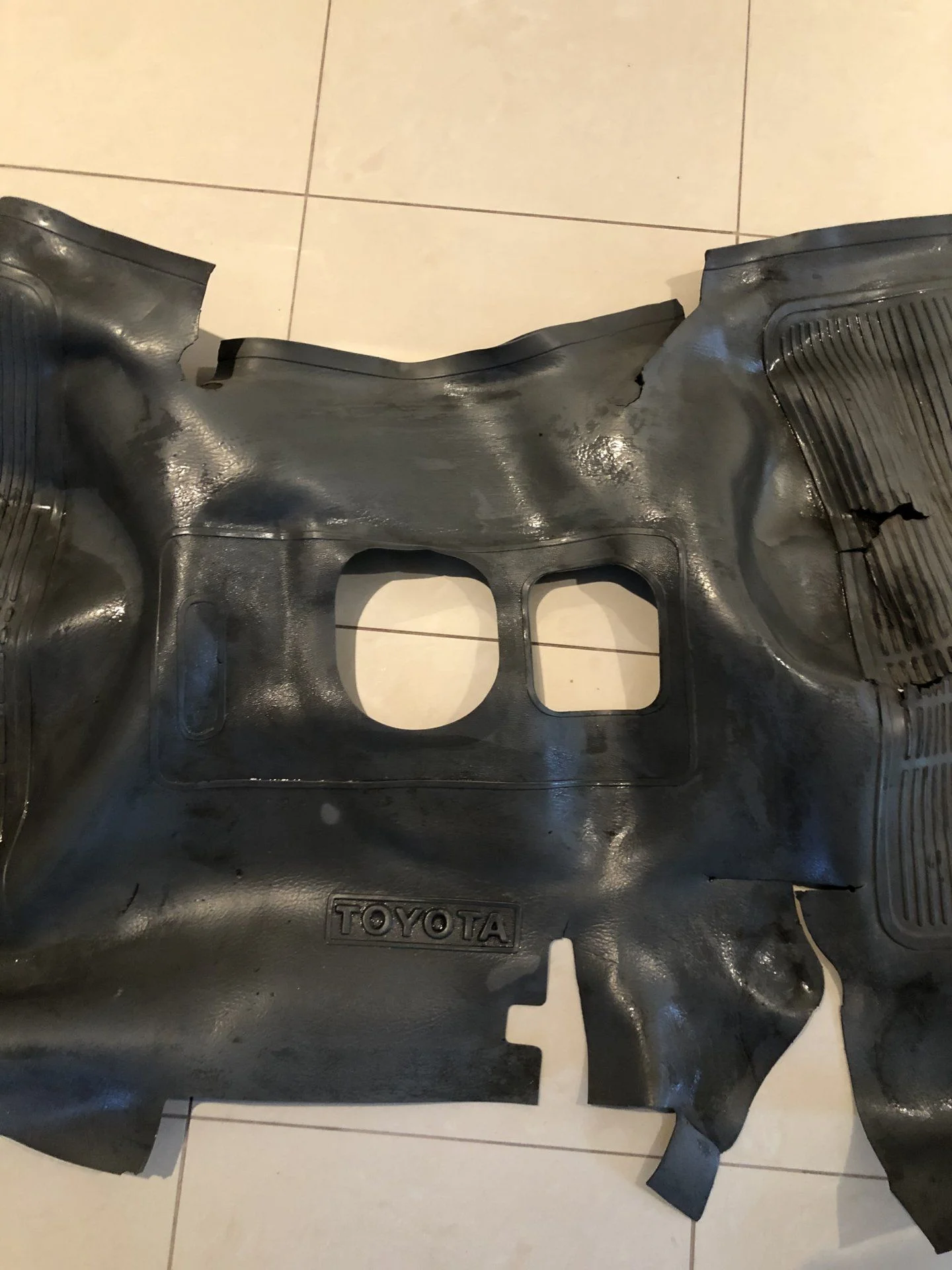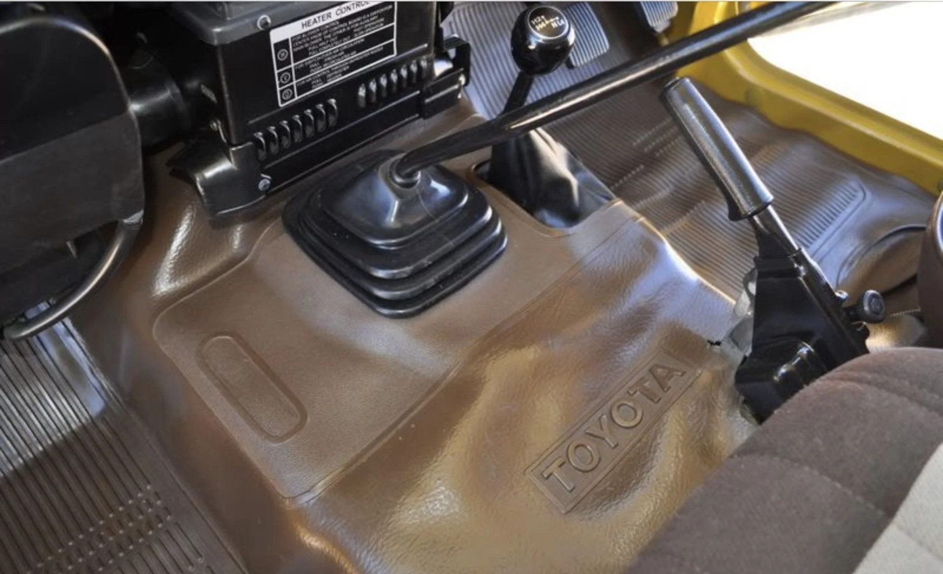 79-10/82 models have flat gearbox cover and use floor mat with larger TOYOTA in the middle (same as the reproduction ones). The photo I shared shows how this type of mat fits on 83/84 with raised gearbox cover. The mat doesn’t fit perfectly around transfer case stick.