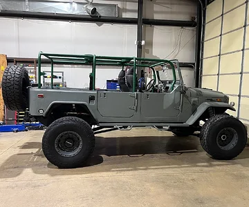 This started as an FJ40 and I cut it in half and stretched it. It was an extended cab short bed, then a 4-door pickup and last year I made it an SUV. The body is all steel comprised of 2 tubs and some extra metal and sprayed with Raptor liner tinted Toyota Lunar Grey. Built from scratch electrical system with full LED lights for pretty much everything. Carplay head unit, 2 front speakers, 4 in the cage and a amp and flat sub in the rear. The half doors are all from Aqualu. Powertrain is a fully rebuilt 6.2L 2018 L86 direct injection motor. The transmission is a 10L80 automatic adapted to an NP241 transfer case. Axles are 2008 Ford F250 Dana 60 front and 10.5 rear that have been regeared to 4.56 and a Detroit locker in the rear. The suspension is custom ladder bar front with Fox 12" coilovers. The rear suspension is a 4-link with 4Runner springs and Fox 2.5" shocks. Everything on this truck is custom, so not ideal for someone who doesn't turn a wrench. Everything works on it but it could use polishing that I don't have enough time to do. It's too tall to fit in my garage so it has to sit outside, covered, and there are some spots starting to rust. I don't have full doors or the AC finished yet. I wanted to get an Atlas transfer case but I have to stop spending money on this guy and move on to different projects. It will come with a bunch of parts to restore front doors, material to build full aluminum rear doors, a rusty set of ambulance doors, a set of front doors from a rolled truck to make another set of half doors and a bunch of miscellaneous stuff that will be helpful to the new owner. The build thread is here on Mud and you can read through all the iterations.