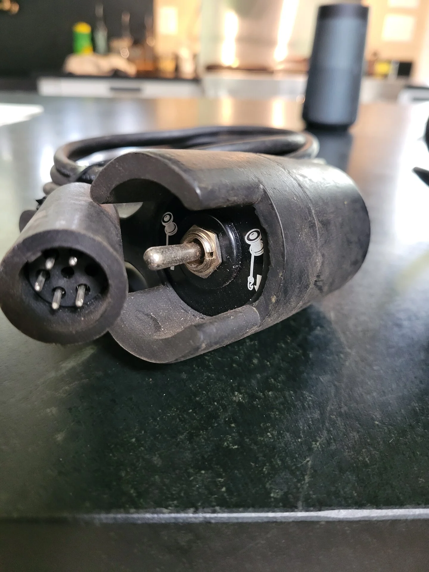 My 73 FJ40 came with a winch made from a military jet engine starter. Would have to check but believe it that four pin jack. Haven't the controller in years but cord looks like it was made from an orange extension cord.