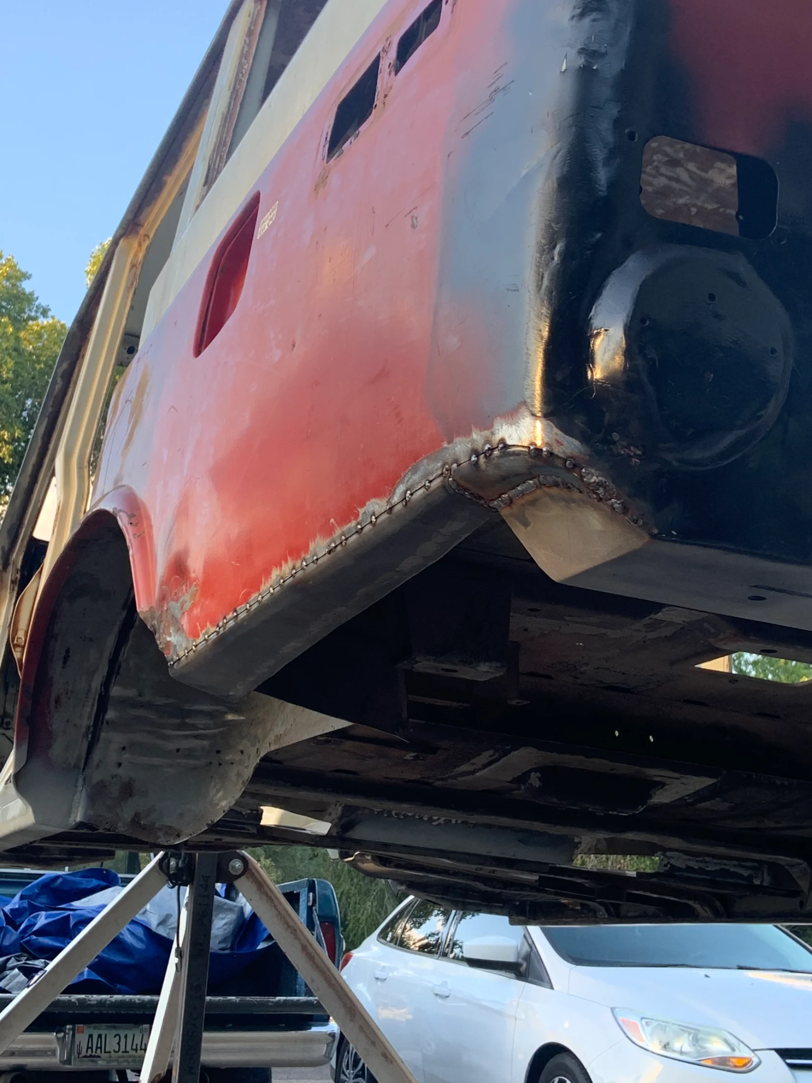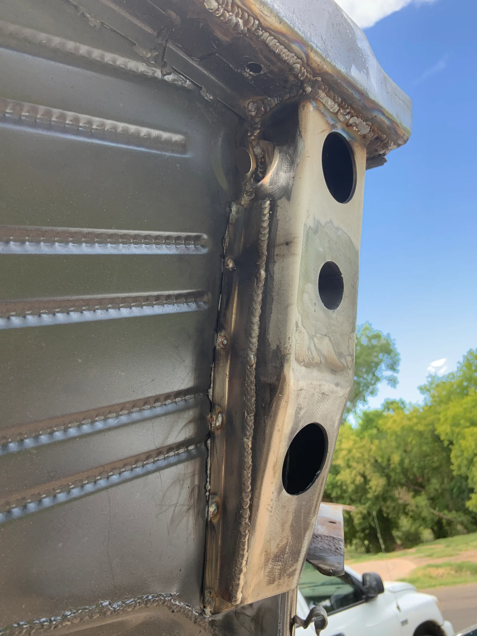 On the bright side, all that rust you see in the first photo above is just there. It's solid an inch or two in from the gutter on the roof and down the sides. On the not so bright side, he has had to basically rebuild all the door bottoms, inside and out, including the tailgate. I think all, or at least most, of the hinge plates were cracked as well.
