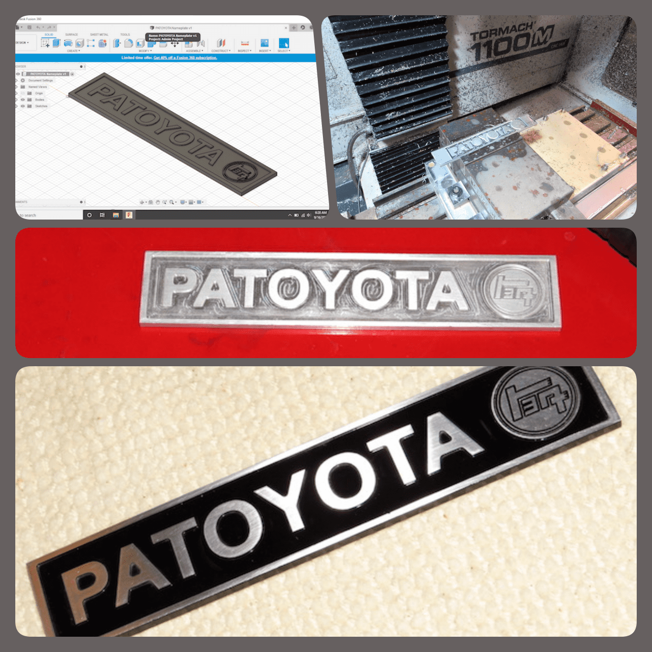 I've been slowly learning the ins and outs of CNC. Here is a nameplate that I created in Fusion360, milled on a Tormach 1100M vertical CNC mill, painted, and then polished. It turned out pretty much exactly how I wanted it to. It's about 1.5" x 7.5" for reference. It's pretty amazing to be able to draw something up and then hold the finished aluminum piece in your hand!