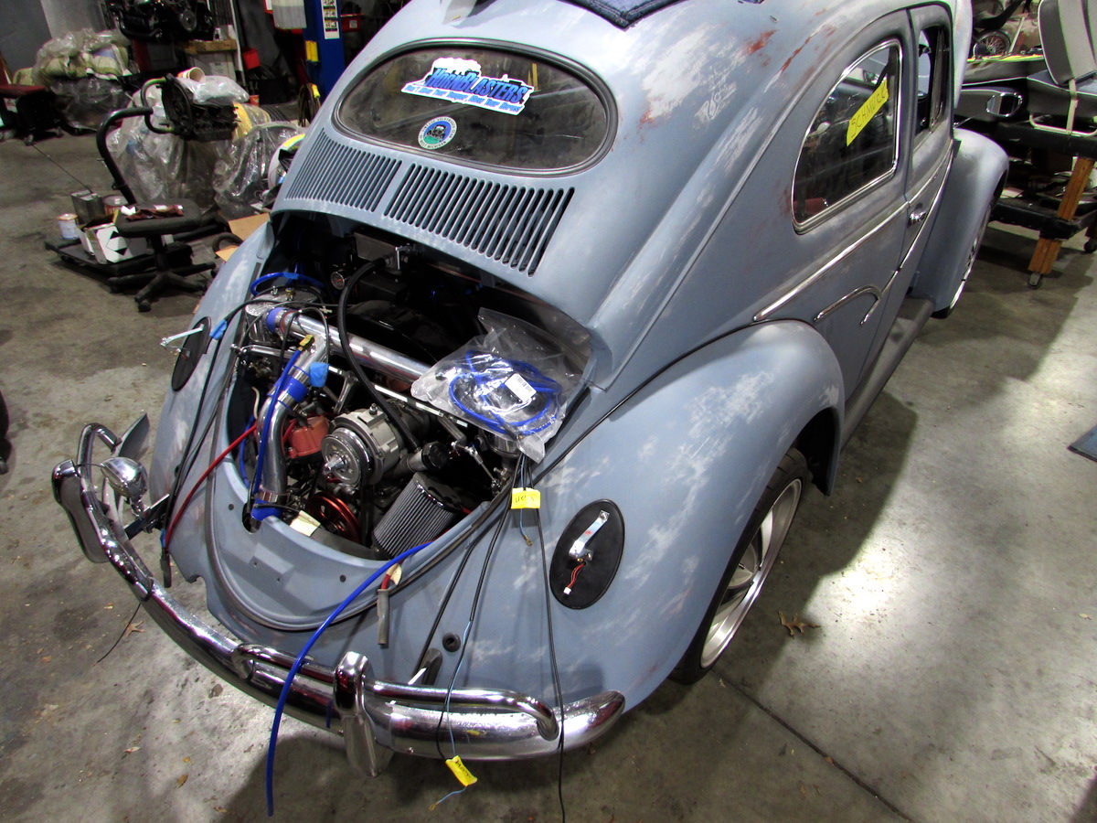 Quite simply, he bit off more than he could chew. I think he did the bodywork first and then started on the air ride. Other than the wiring on the air ride and leaks in the plumbing, it isn't too terrible up to that point. But then he got the engine from a sandrail, added the fuel injection, changed turbos because the original just wouldn't fit, and then tried to stuff all the parts into a Beetle. I think he realized that he was in over his head, so he sort of gomblycocked (I created that word just to try to describe this situation) everything together to make it look kind of like it was all there and sold it. At least that's my current understanding of things.