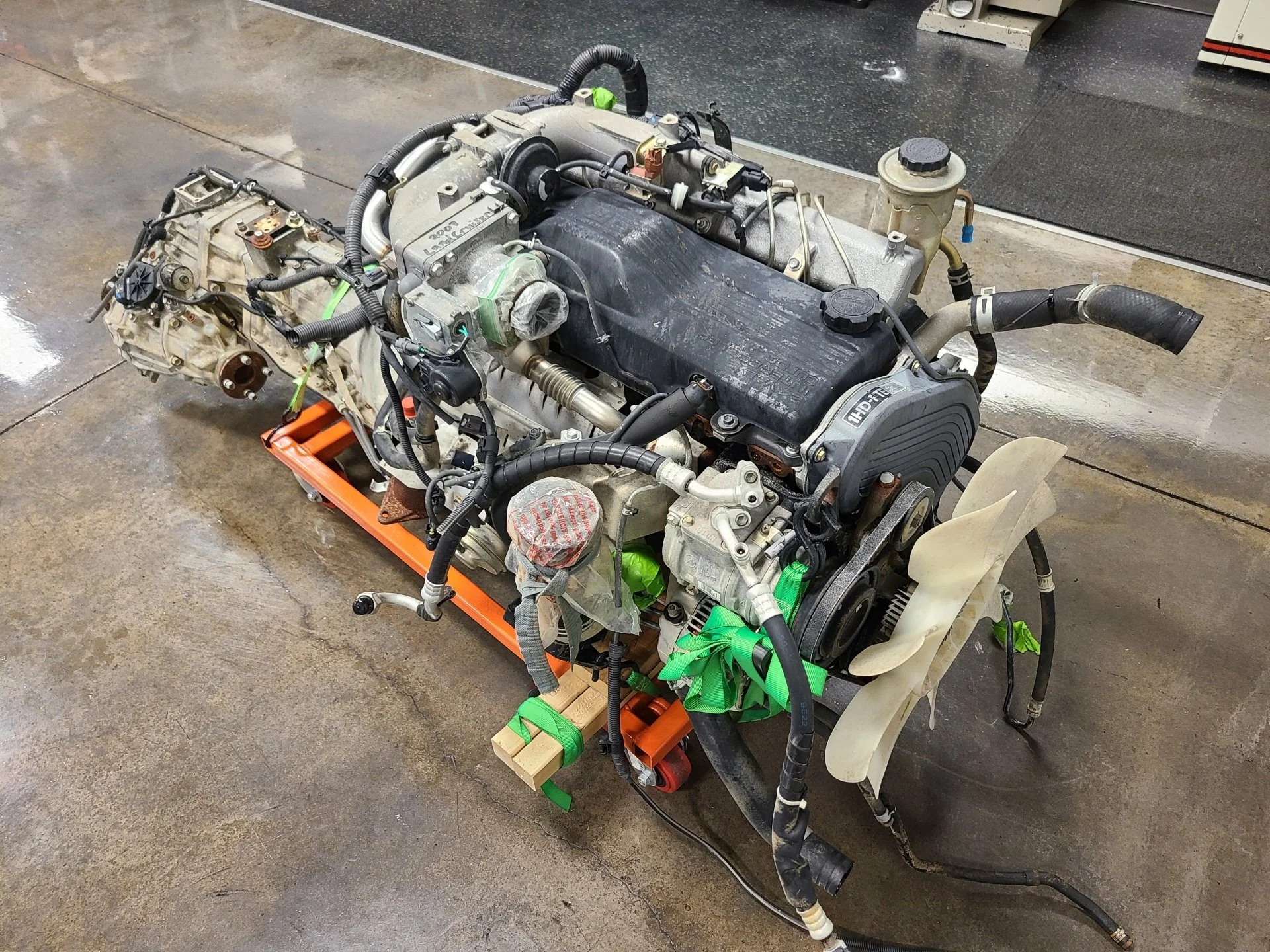 The FTE motor cleaned up really well. The block is really rusty....front cover faded....valve cover is chalky.....couple pieces on the trans rusted(some bolts, spacers). I'm guessing that this motor sat in the sun for a bit at some point....probably was never covered. Not a spec of grease or dirt anywhere on it(before we cleaned it obviously). Really curious about why so much rust on the block and so little paint. Weird.