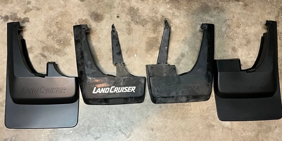 The original HZJ77 flaps seem to be made of genuine real rubber and has a nice feel to them. The newer flaps are just plastic like. Something else to consider.