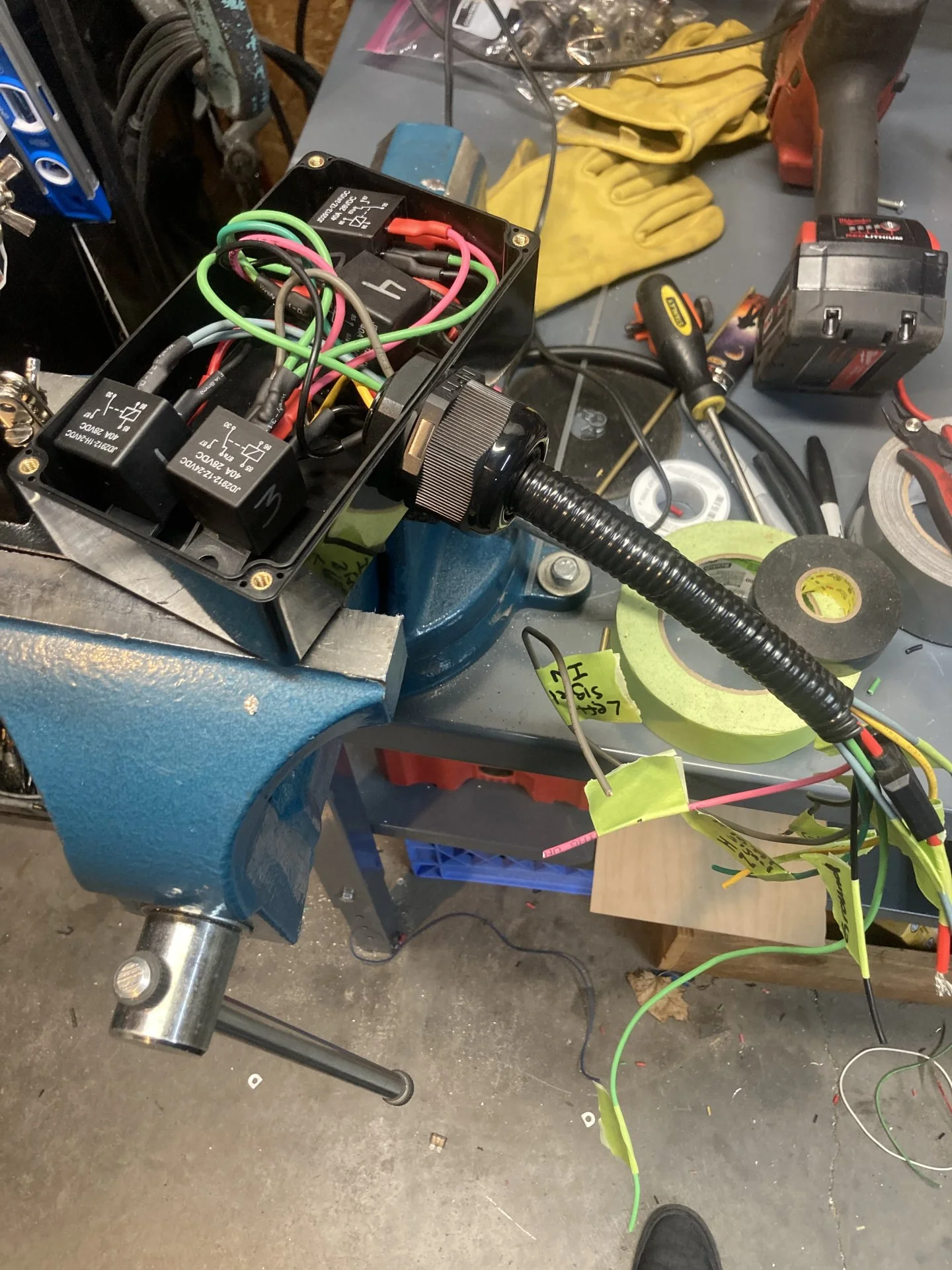 I made the 24V-12V trailer conversion box, used a rare earth magnet on the back of it to stick it inside the quarter panel